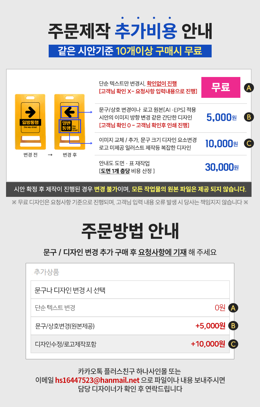 - 주문제작 상품의 경우 주문>디자인>시안 승인 후 에 제작이 진행되므로, 주문후 7~14일 (게시판제작시 최대3주) 정도 후에 받아보실 수 있습니다.