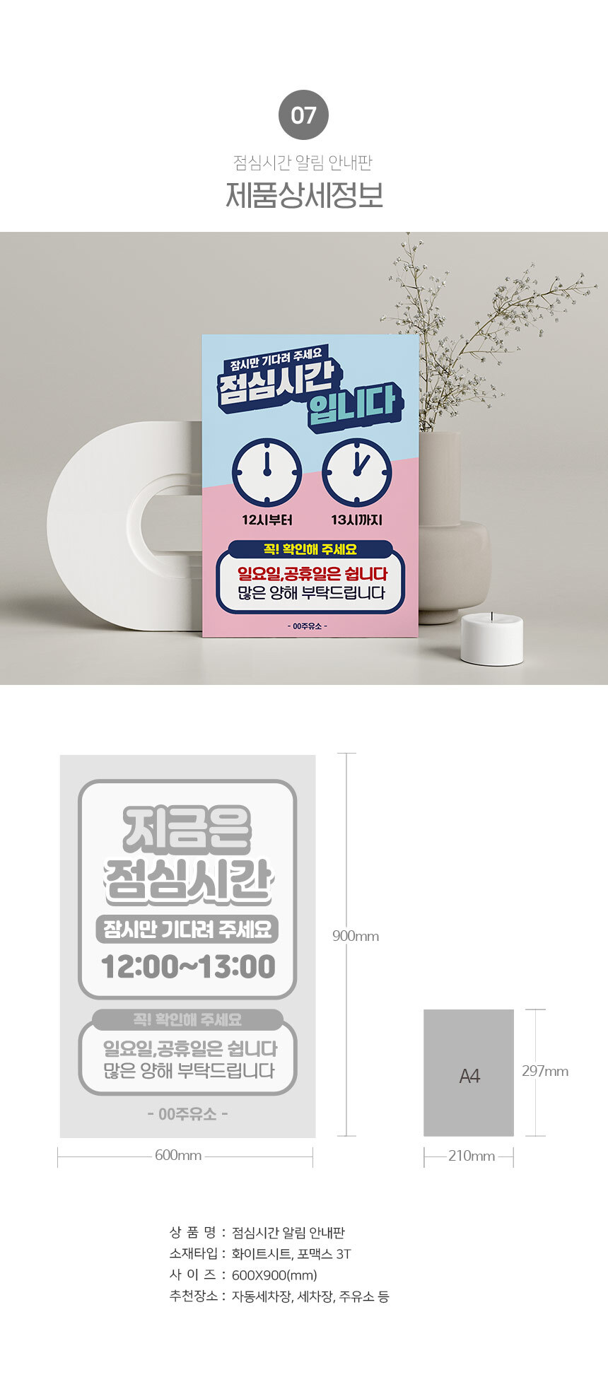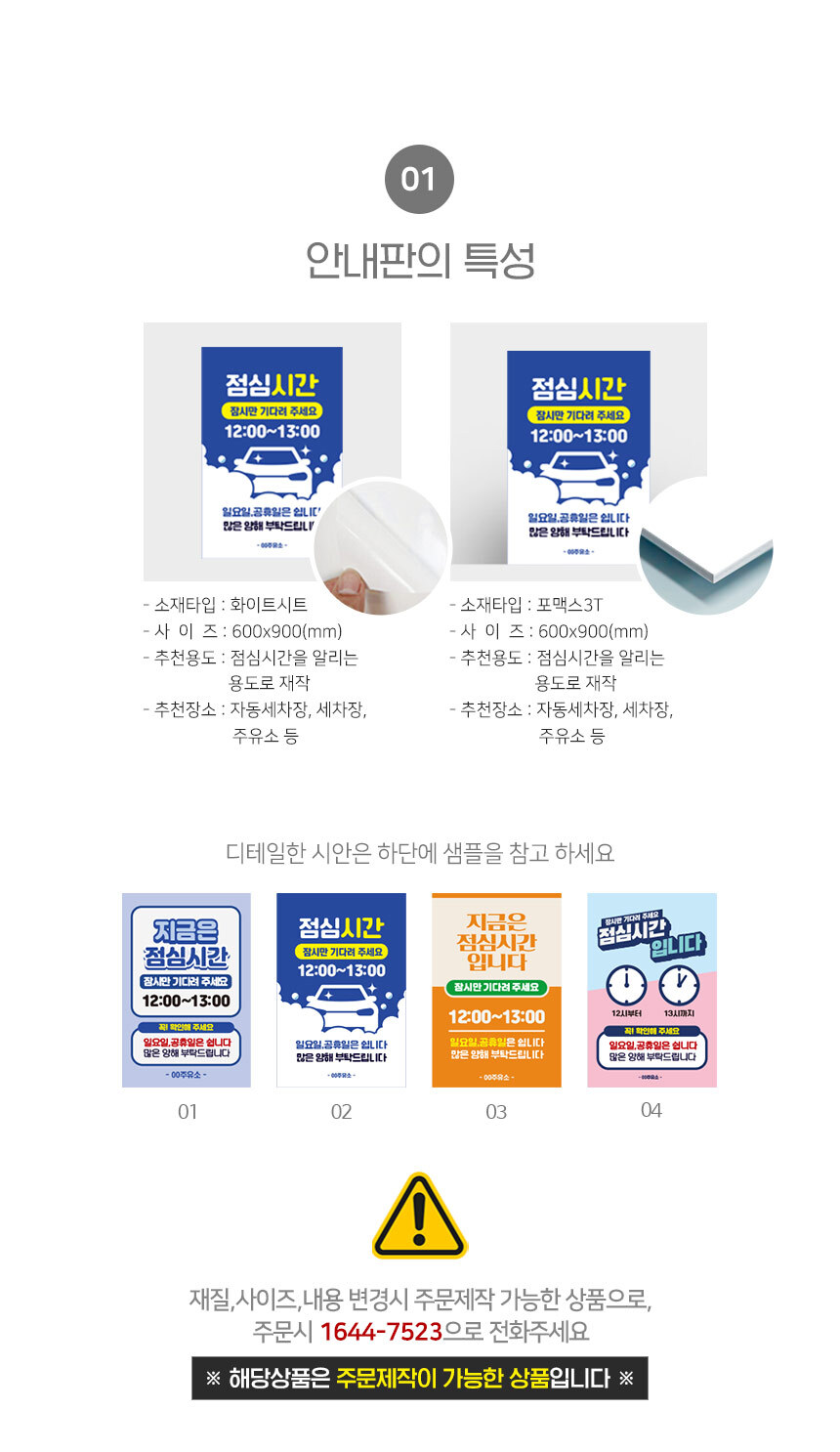 - 주문제작 상품의 경우 주문>디자인>시안 승인 후 에 제작이 진행되므로, 주문후 7~14일 (게시판제작시 최대3주) 정도 후에 받아보실 수 있습니다.