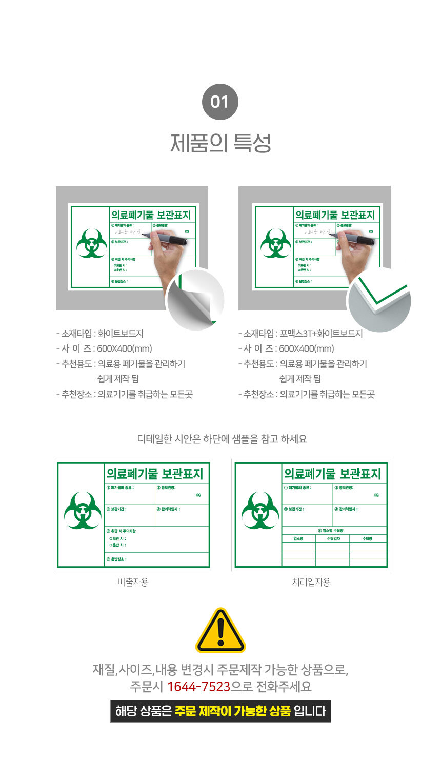 - 주문제작 상품의 경우 주문>디자인>시안 승인 후 에 제작이 진행되므로, 주문후 7~14일 (게시판제작시 최대3주) 정도 후에 받아보실 수 있습니다.