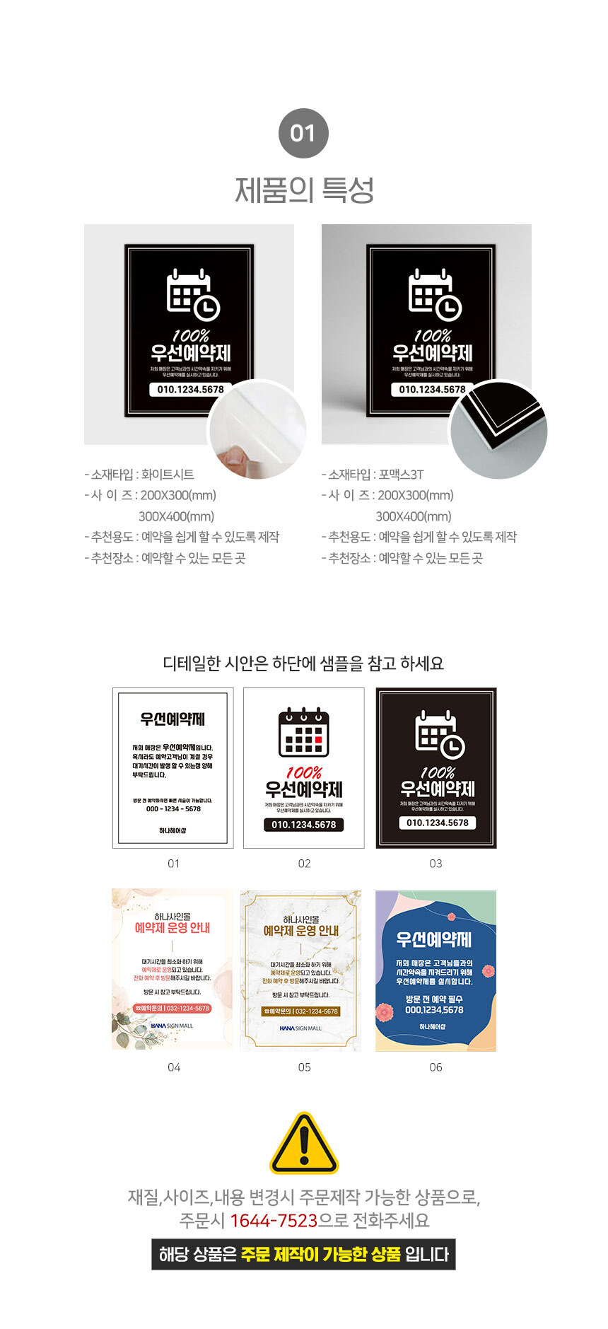 - 주문제작 상품의 경우 주문>디자인>시안 승인 후 에 제작이 진행되므로, 주문후 7~14일 (게시판제작시 최대3주) 정도 후에 받아보실 수 있습니다.