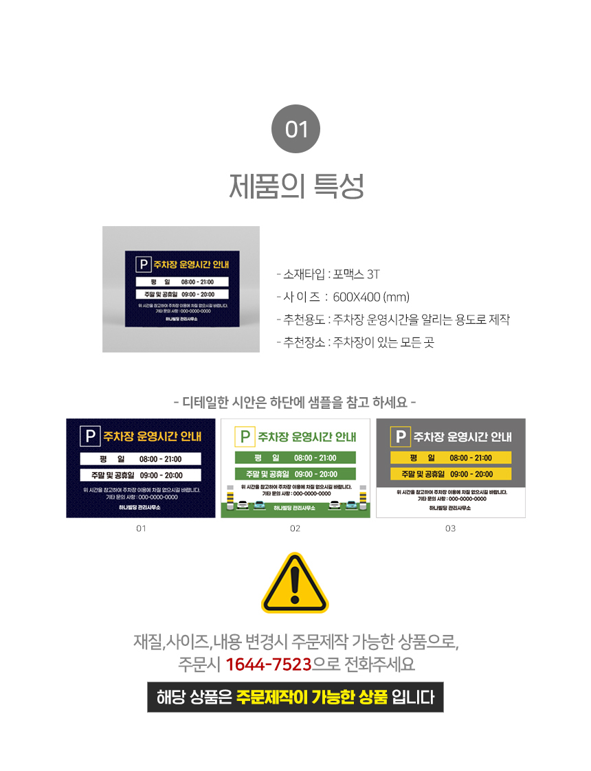 - 주문제작 상품의 경우 주문>디자인>시안 승인 후 에 제작이 진행되므로, 주문후 7~14일 (게시판제작시 최대3주) 정도 후에 받아보실 수 있습니다.