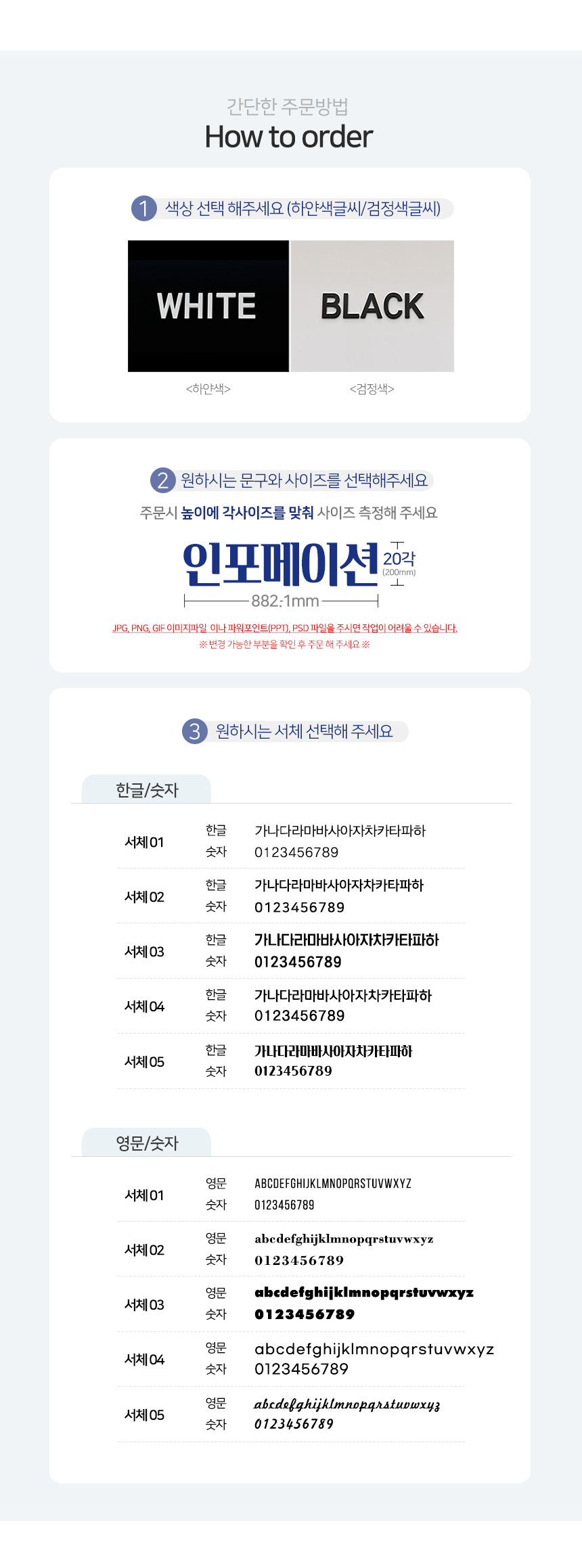 주문시 참고하여 글자별 수량 갯수로 주문부탁드립니다.
