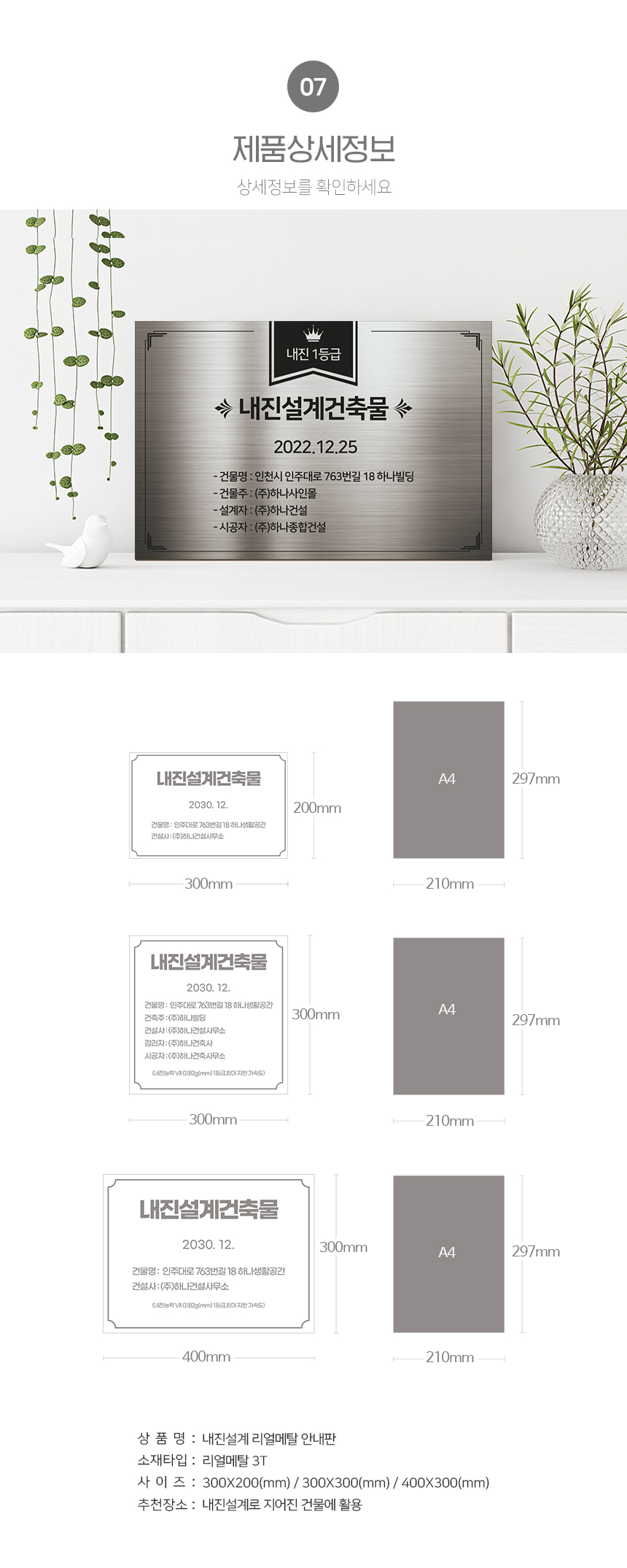 제품사양300X200(mm) 300X300(mm) 400X300(mm)