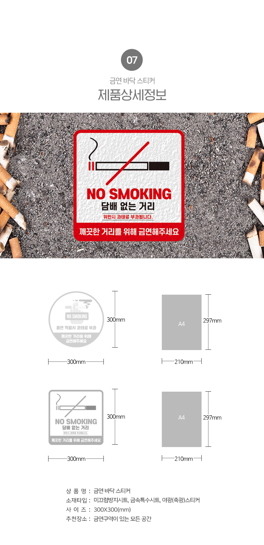 금연 바닥 스티커 원형 / 정사각형 타입
