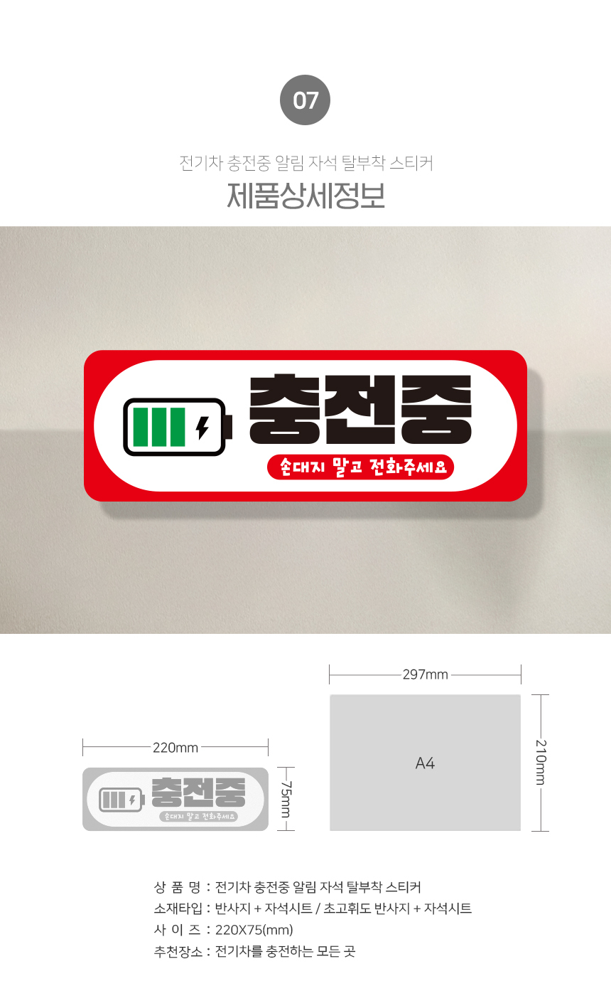 전기차 충전중 알림 자석 탈부착 스티커 직사각형 타입