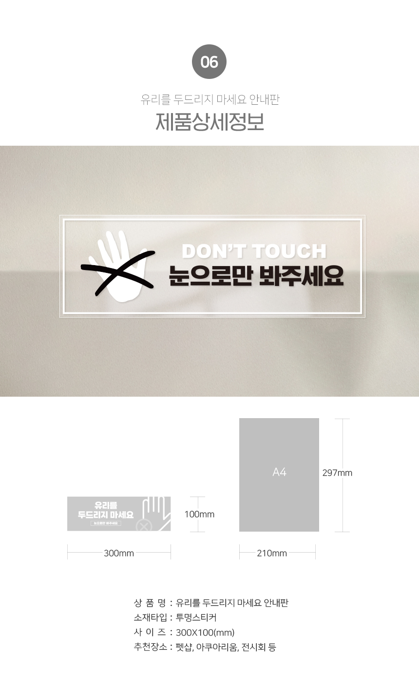 유리를 두드리지 마세요 스티커 직사각형 타입