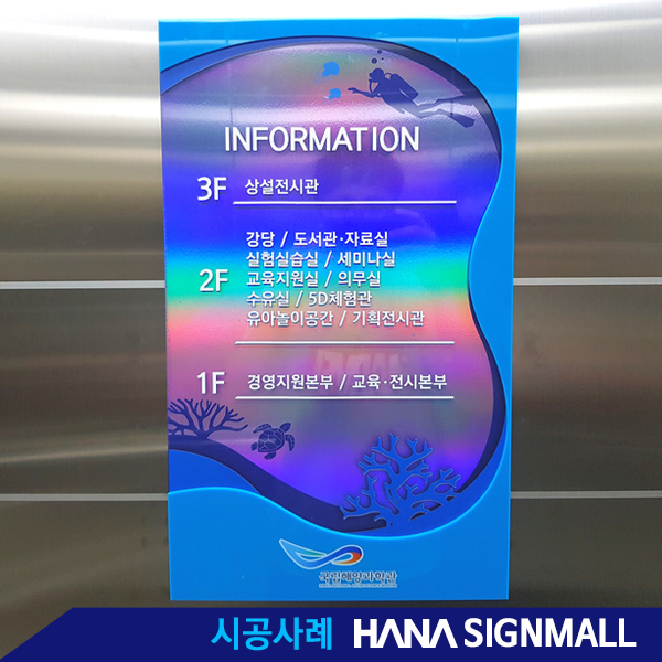 아쿠아플라넷 시공사례 창문 시트지 & 천정형 안내판 설치 완료