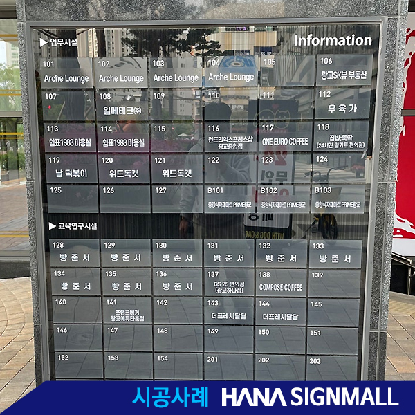층별 안내부터 공지사항 안내까지 실용적인 인포메이션&게시판 시공