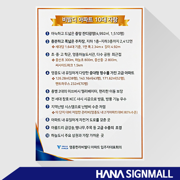 9월 첫째 주 디자인과 내구성 모두 잡은 하나사인몰 게시판 제작 및 출고