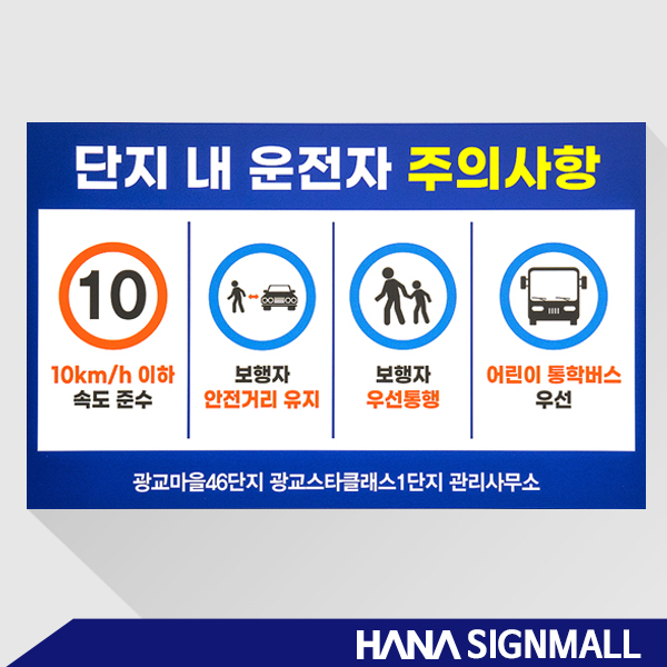 아파트 단지내 출구 안내판 단지내 서행 관리사무소 운전자 주의사항 표지판 제작