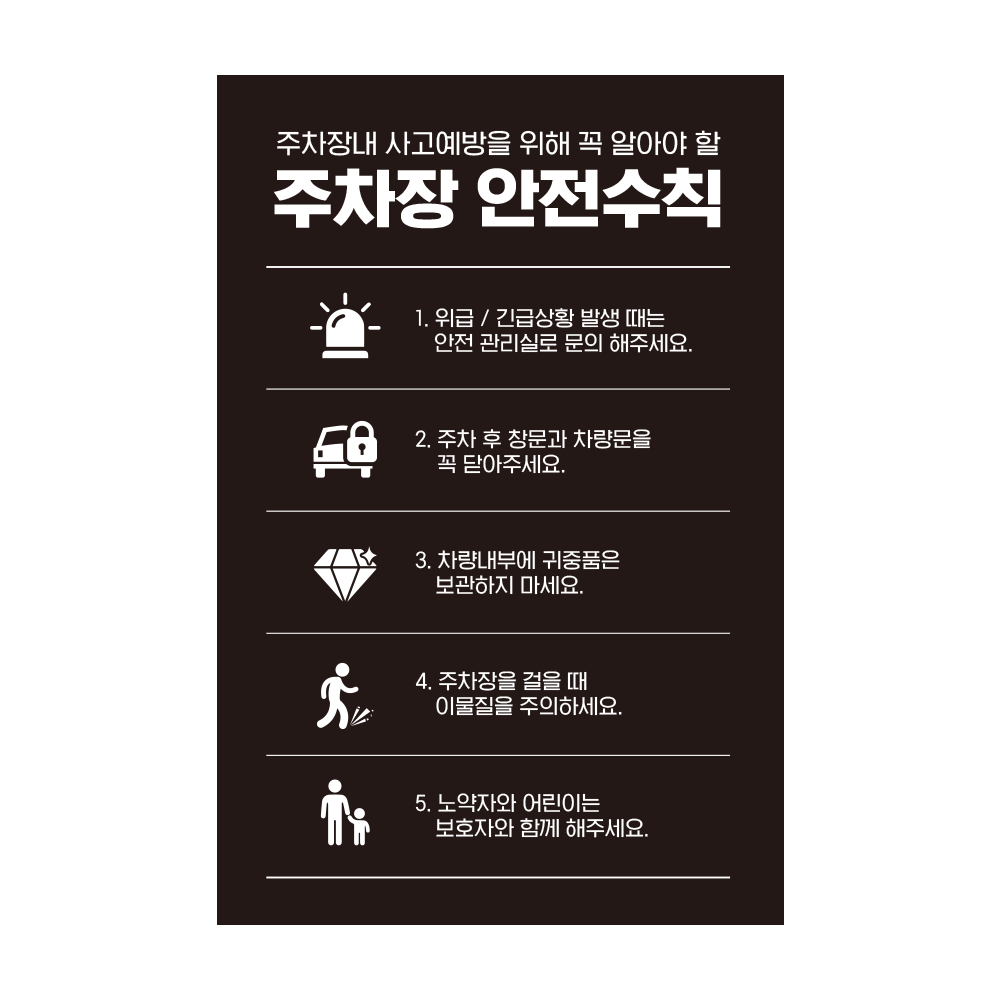 주차장 안전사고 예방 안내판