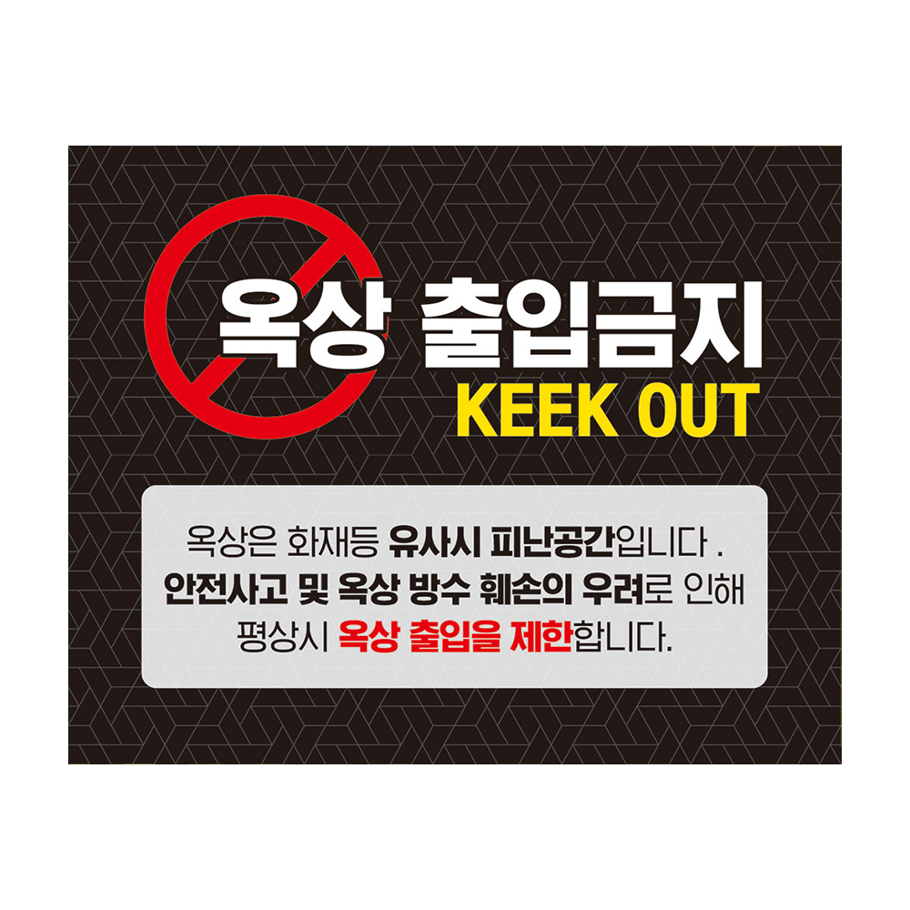 화재 대피상황 외 출입금지 안내판