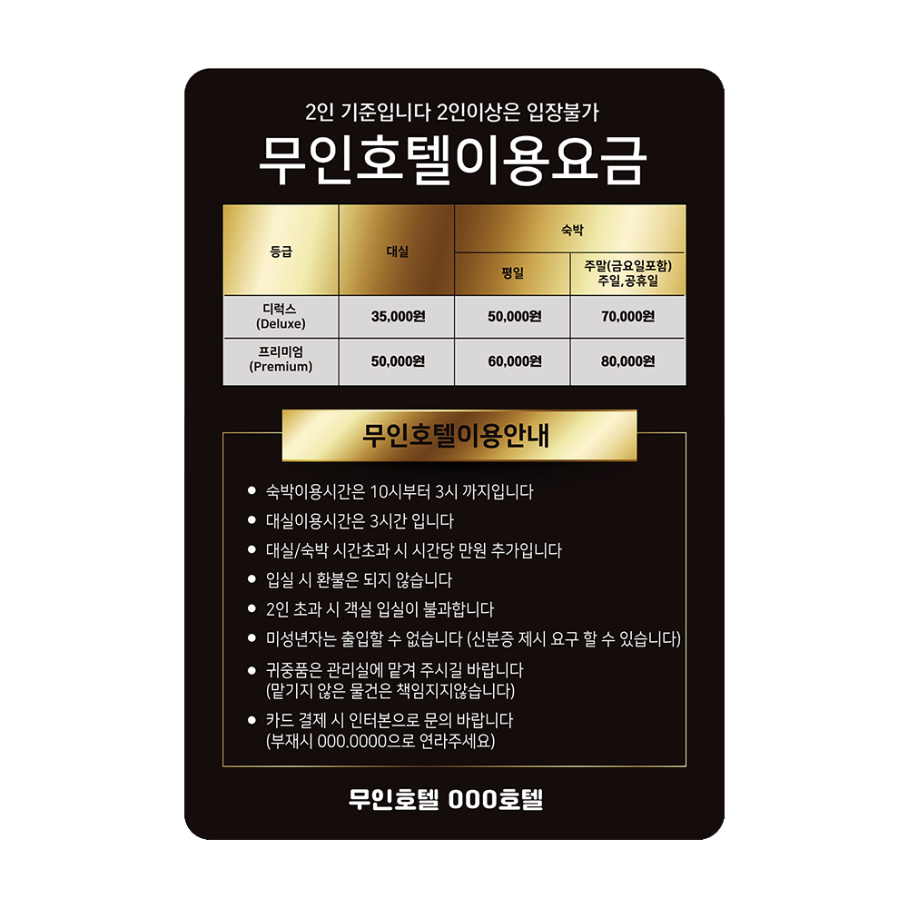 무인호텔 이용 안내판