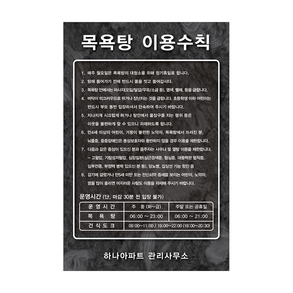 사우나 목욕탕 안내판 실사출력