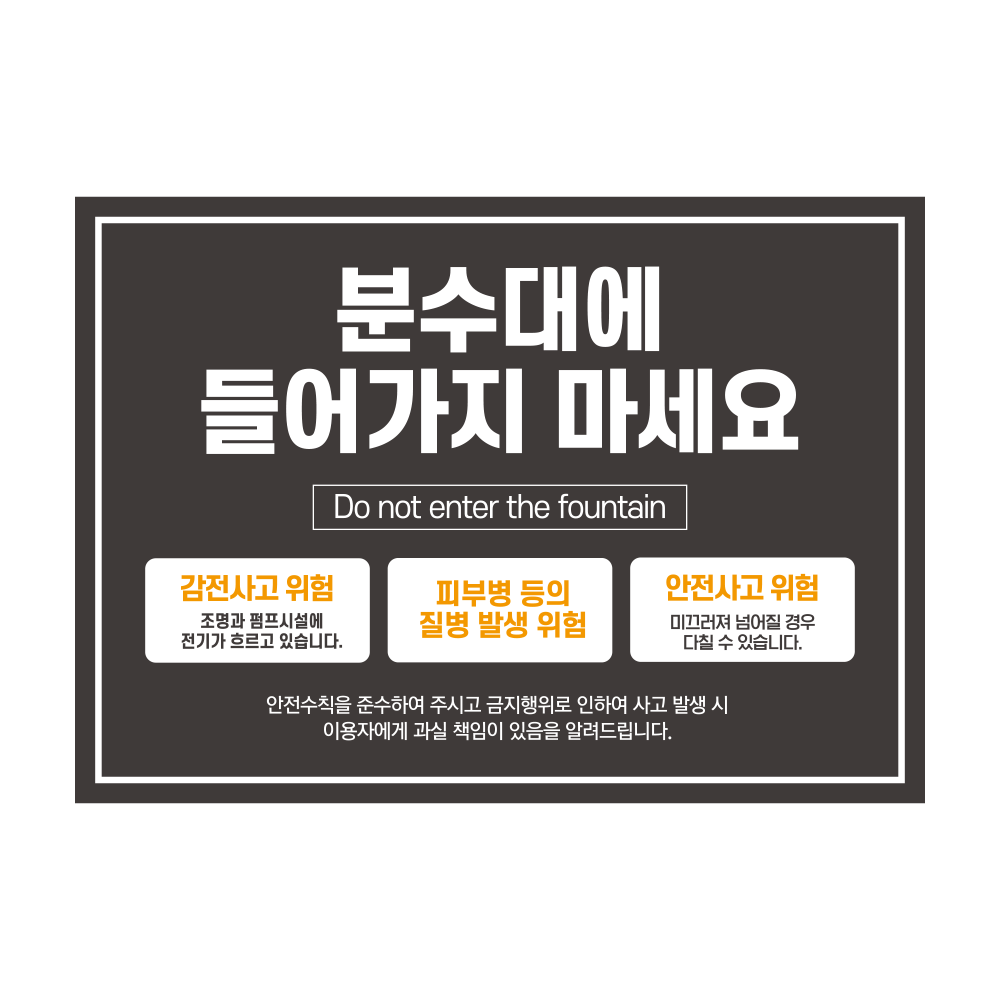 분수대 출입금지 안내판