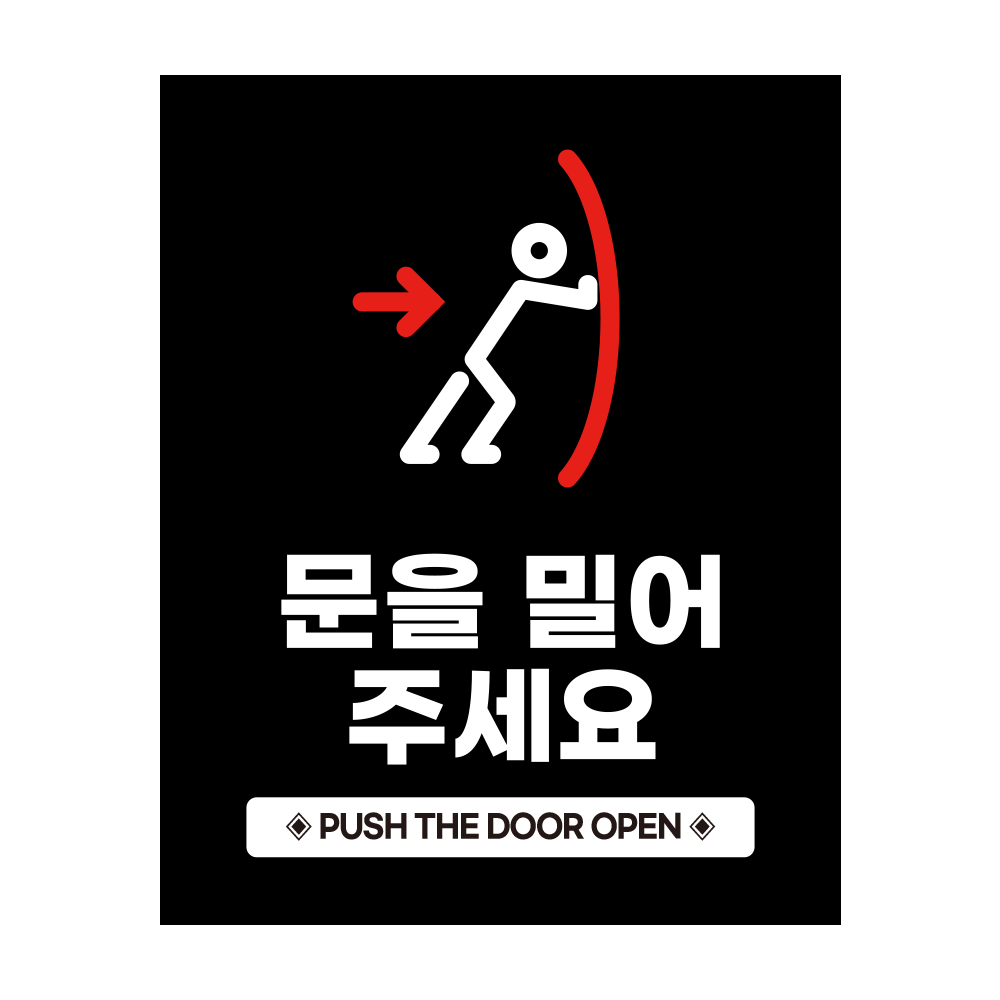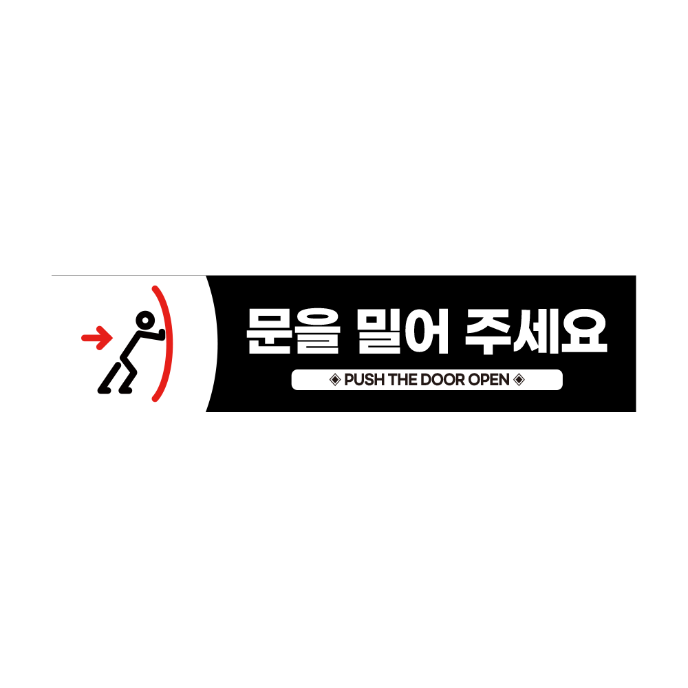 문을 밀어주세요 안내판 가로 타입