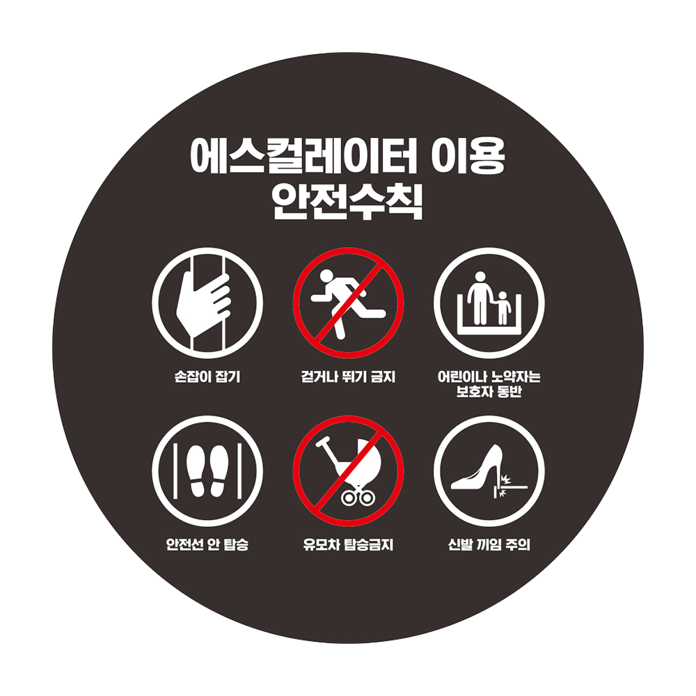 에스컬레이터 이용 안전수칙 스티커 화이트시트 / 미끄럼방지시트 - 원형 타입