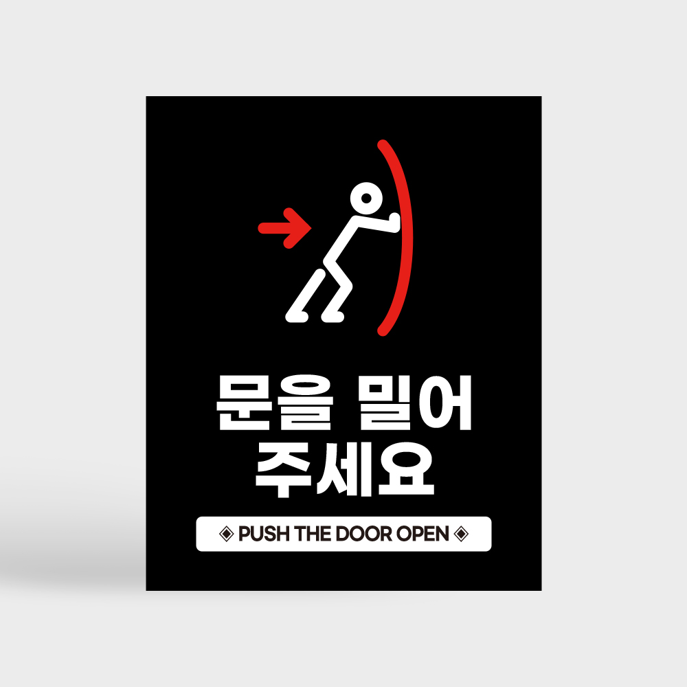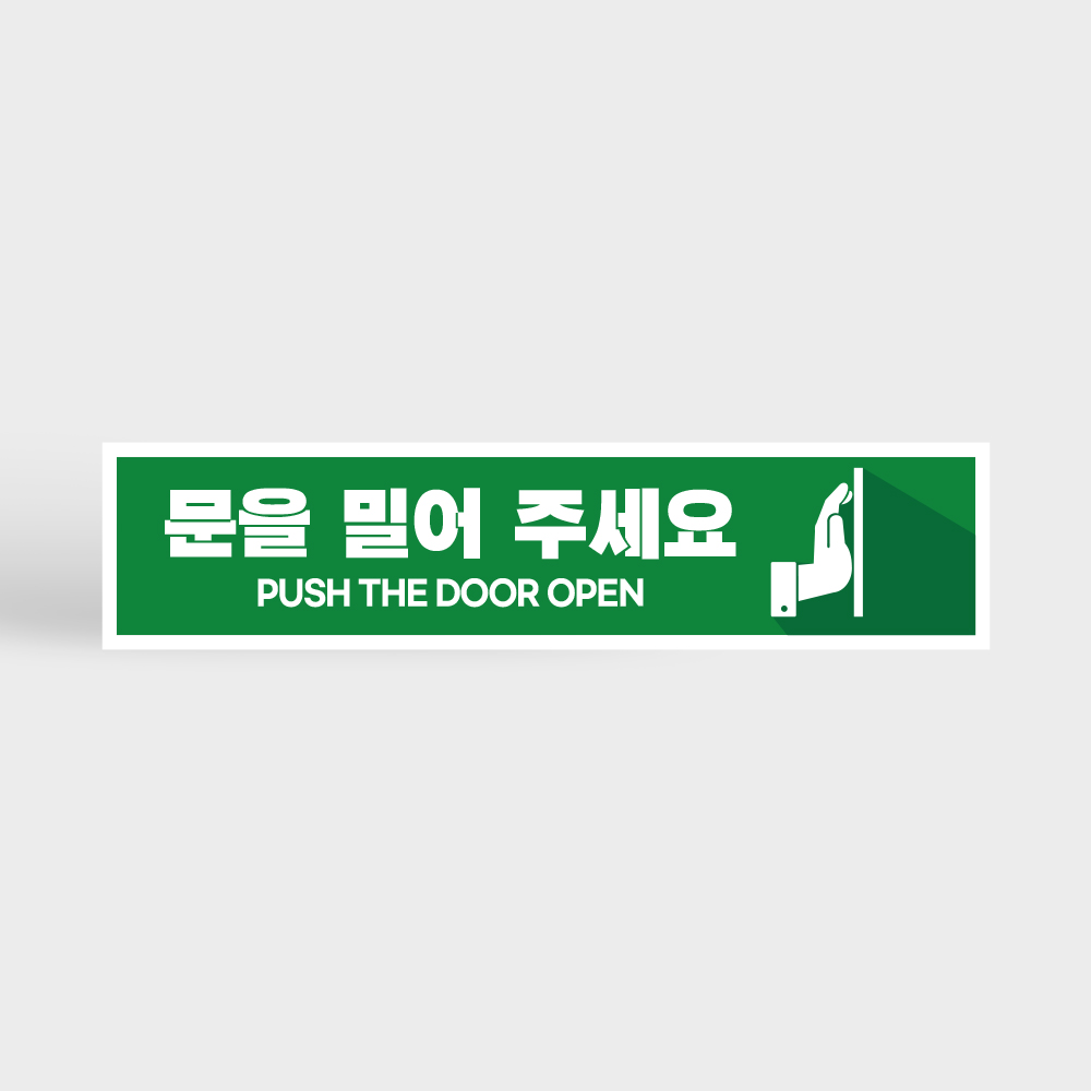 문을 밀어주세요 안내판 가로 타입
