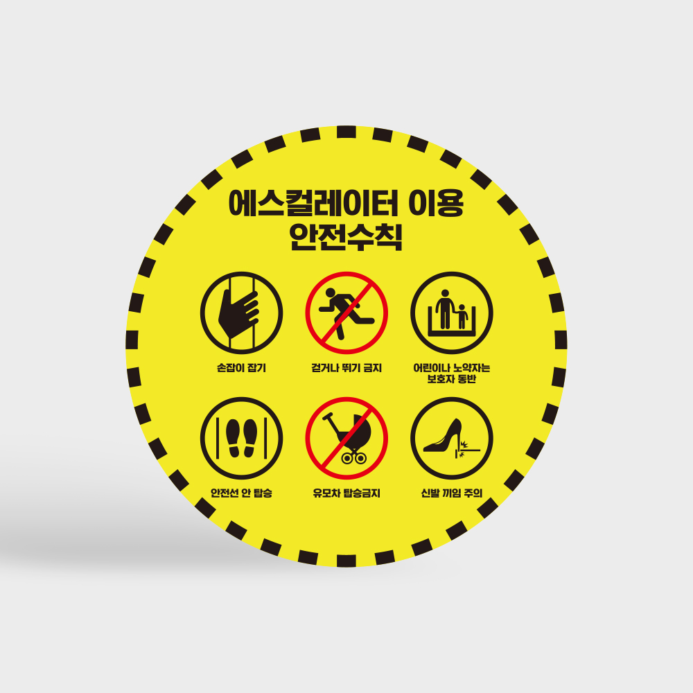 에스컬레이터 이용 안전수칙 스티커 화이트시트 / 미끄럼방지시트 - 원형 타입