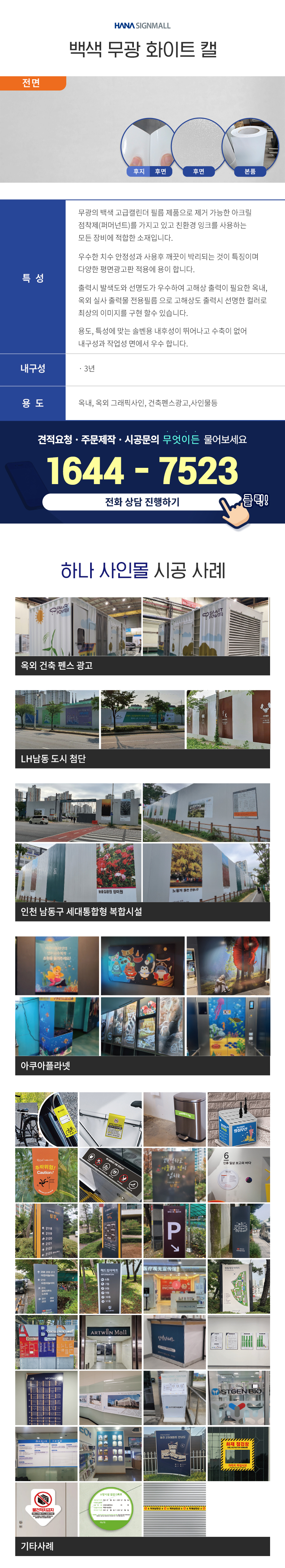 백색 무광 화이트 캘