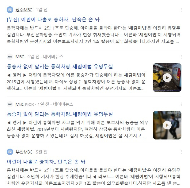 어린이 보호 차량이 많이 없다는 안타까운 기사를 볼 수 있습니다!