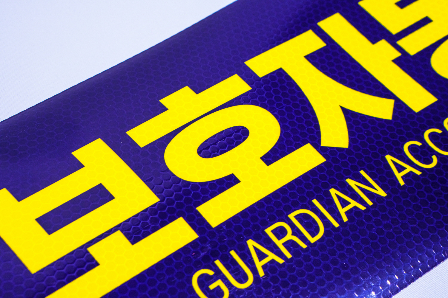 도로 표지판에 사용되는 고휘도 반사 시트를 부착하여 어두운 곳에서 소량의 빛으로도 빛을 밝게 반사시켜