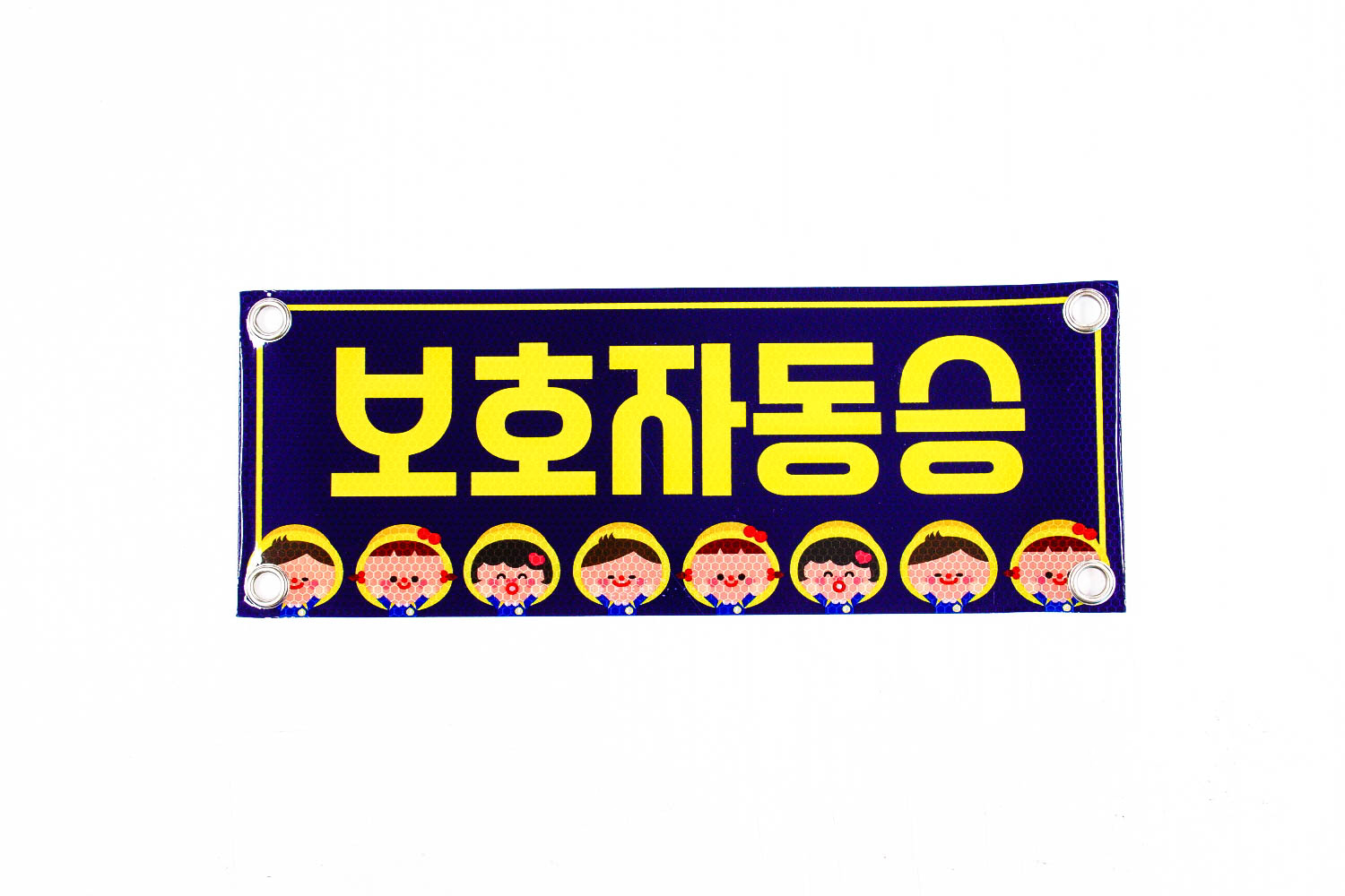 보호자를 태운 어린이 보호 차량에 부착하여 사용할 수 있는 자석 스티커 제품으로
