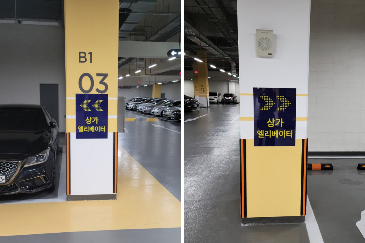 지하주차장에서 엘리베이터 위치를 찾기 쉽게