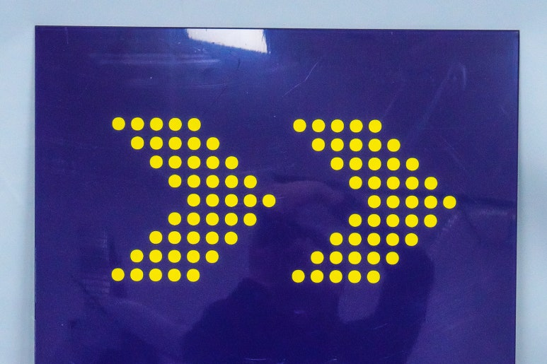 건물 내 엘리베이터 위치를 알려주는 안내판입니다.