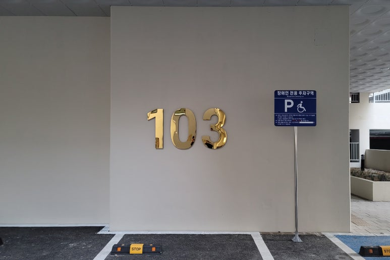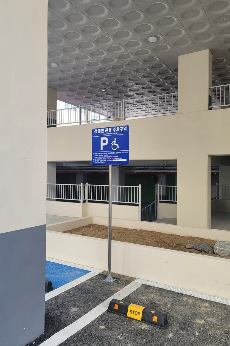 이렇게 장애인 전용 주차구역을 알리는 안내판도 설치가 되었습니다.