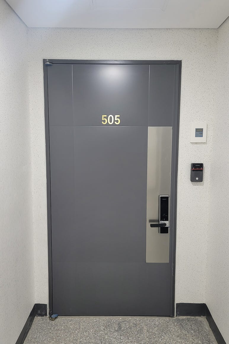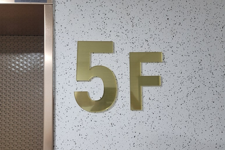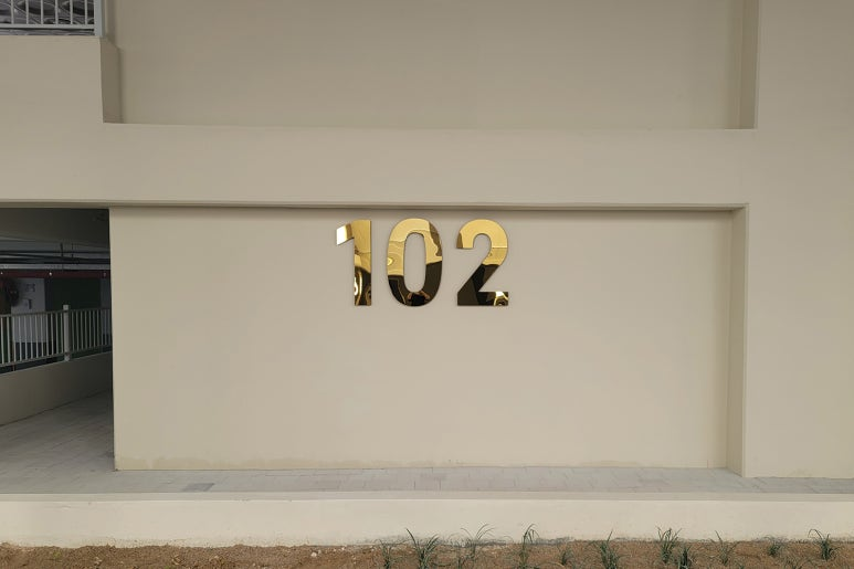 빌라라 건물 외벽에 건물 동을 알리는 골드미러고무스카시 간판이 설치되었습니다.