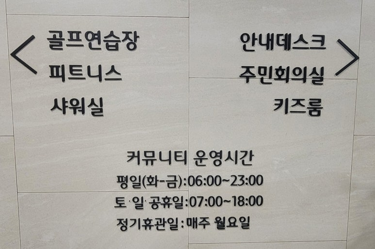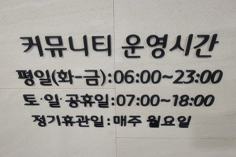 기존 설치되어 있는 방향안내판 아래쪽에 커뮤니티 운영시간을 제작한 건으로