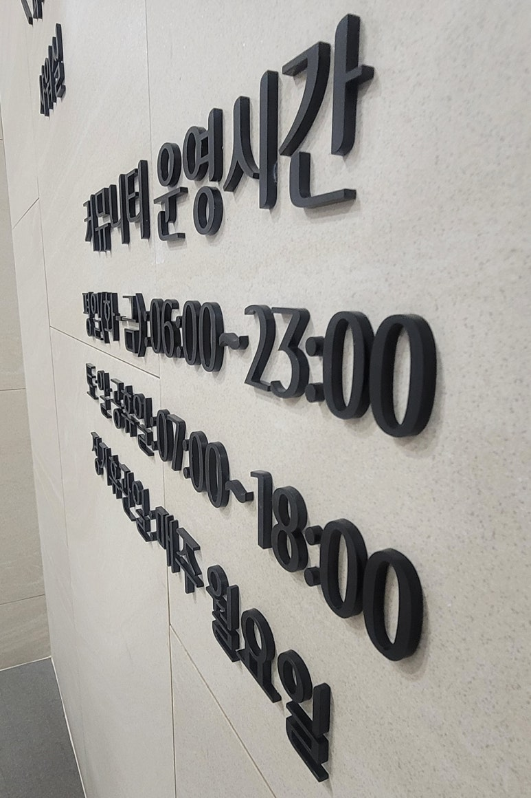 기존 글자와 달라 타공이 노출되어 포맥스 인쇄된 판을 덧대어 작업하여 깔끔한 모습입니다.