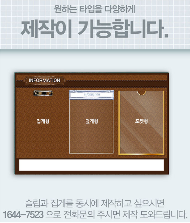 포켓타입으로 넣었다 뺐다 안내문을 편하게 교체할 수 있는 타입 이에요 !!
