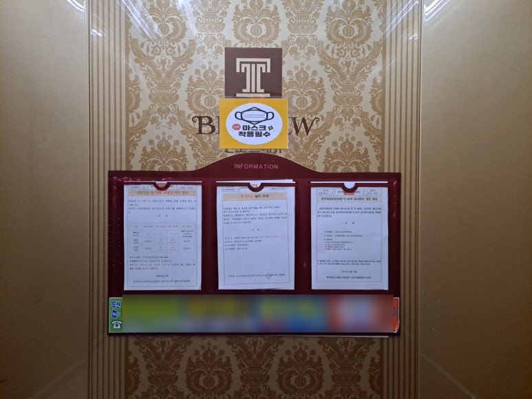 엘리베이터 게시판 종이꽂이 안내문 시공전 사진 이에요 ~~