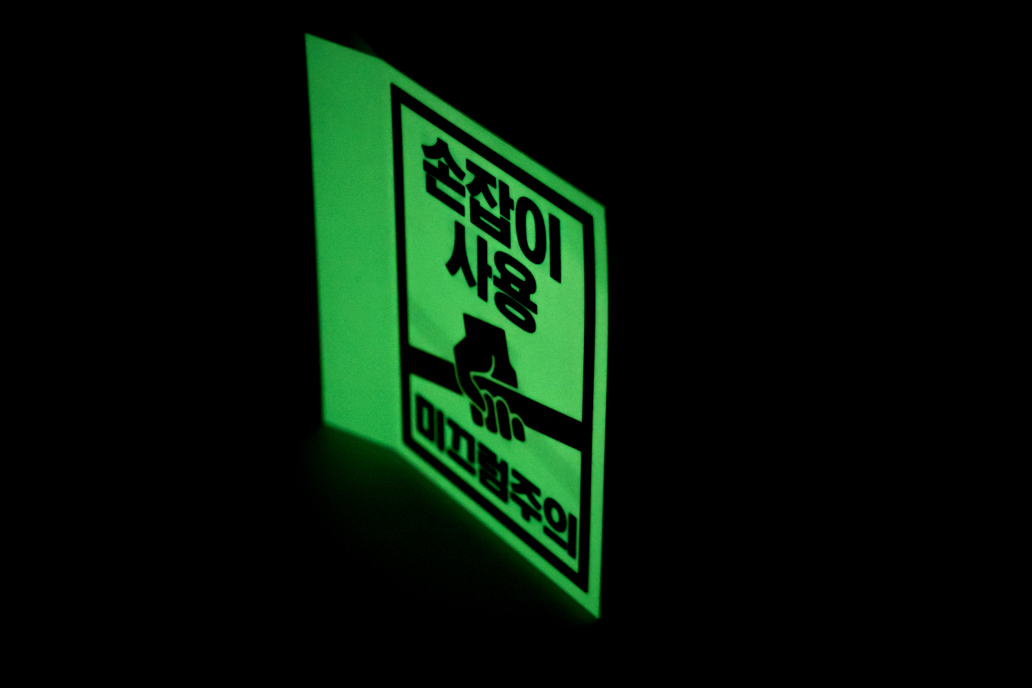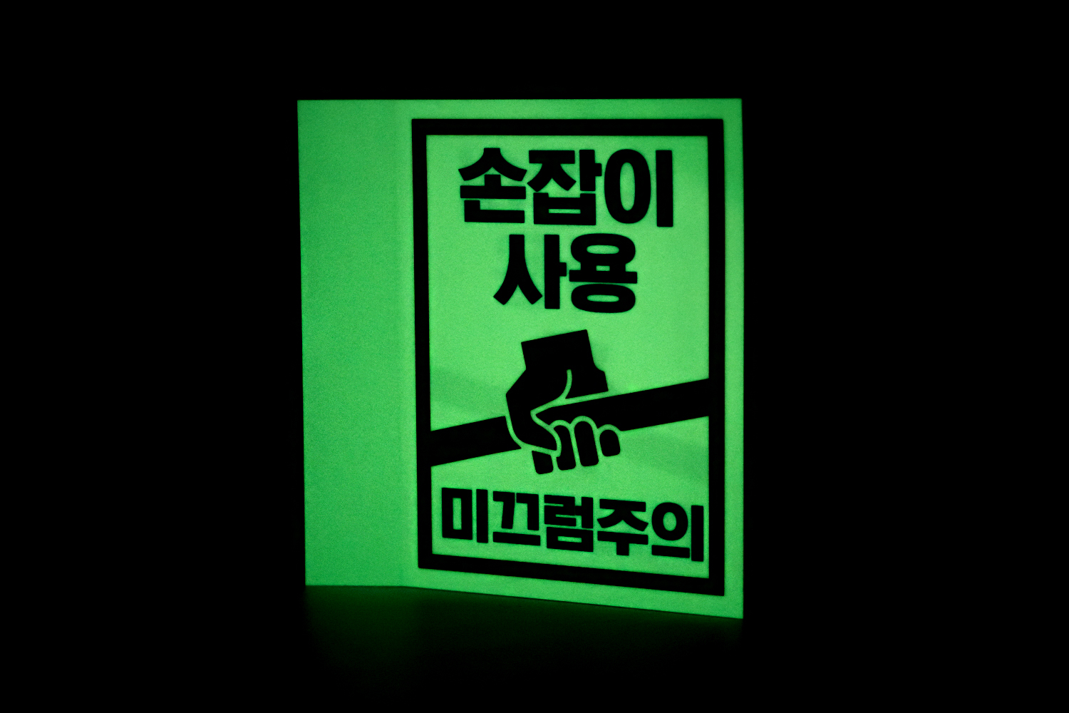 축광(야광) 타입의 스티커로 빛을 머금었다가 어두울 때 발광하기 때문에