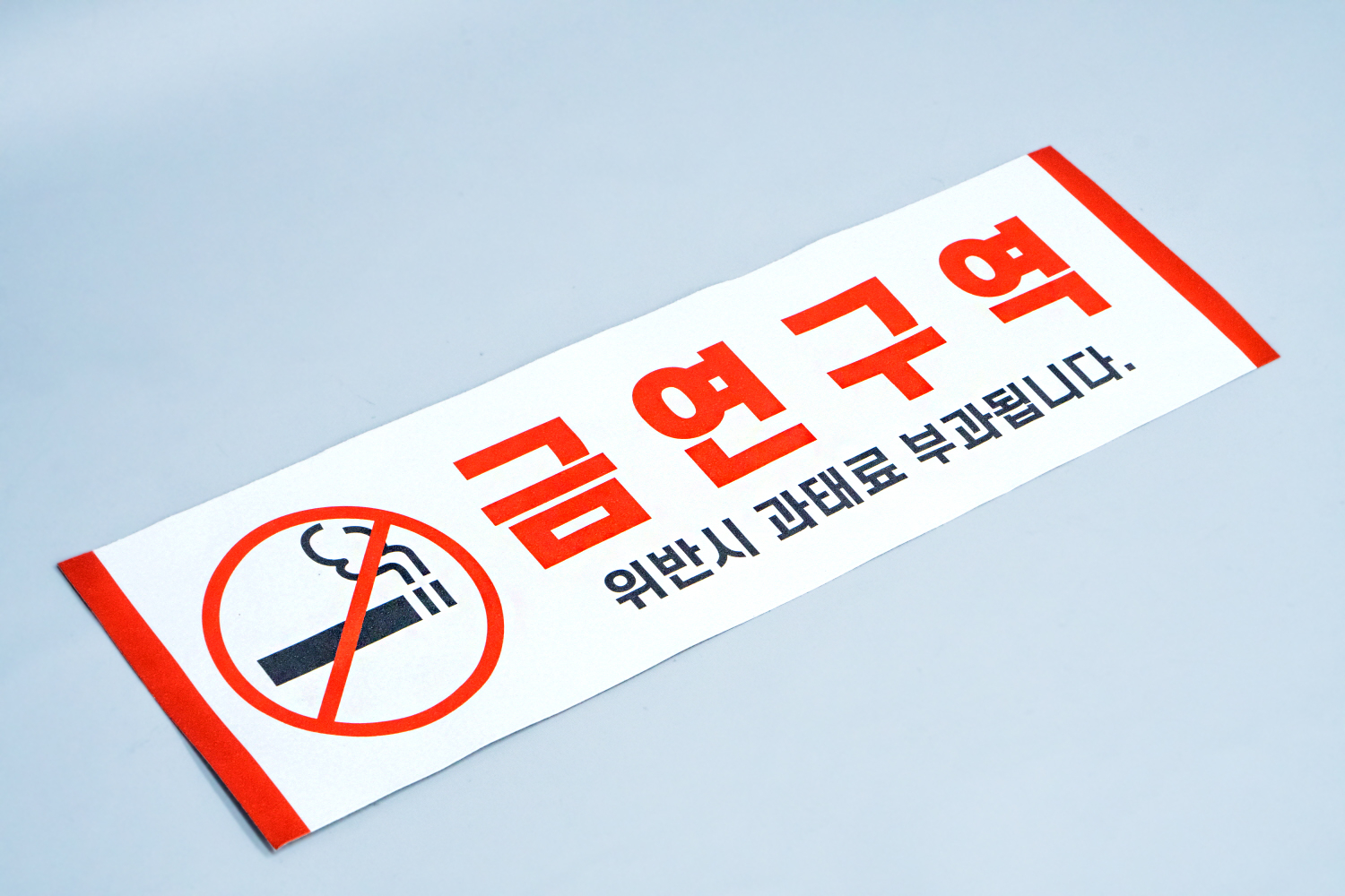 금연 구역으로 지정된 어느 곳이든 부착할 수 있는 스티커인데요!