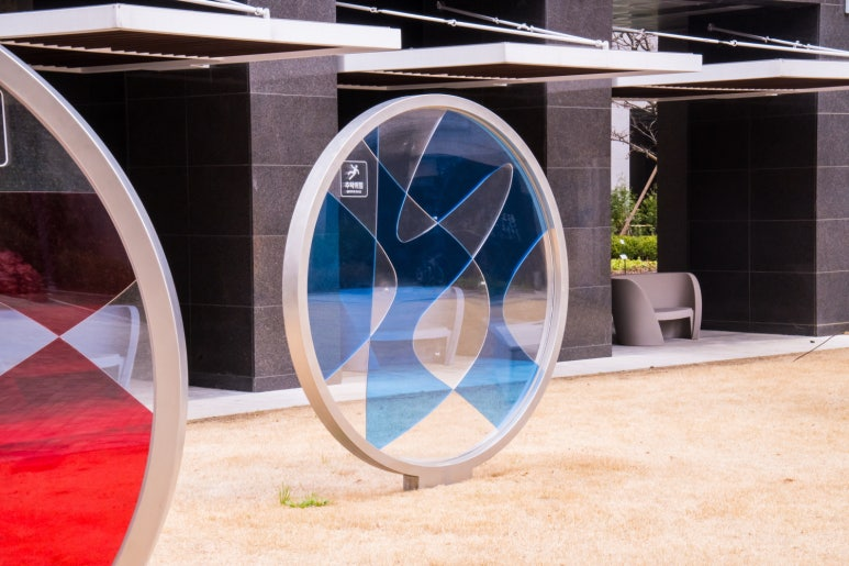 위 사진처럼 유리벽 뿐만 아니라 아파트나 상가의 조형물에도