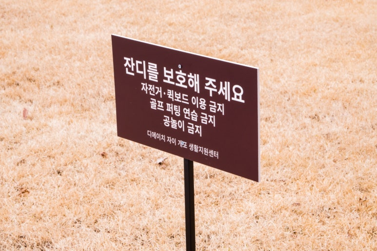 잔디 보호를 알리고, 잔디에 들어와서 하면 안되는 행위를 경고할 수 있습니다!