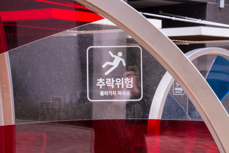 다양한 안내판과 스티커로 위험을 알리고, 경고를 하는 것 뿐만 아니라