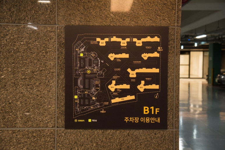 넓은 아파트의 단면도와 현위치를 표기하여 주차장 내 동선파악이 가능하도록 한 안내판입니다!