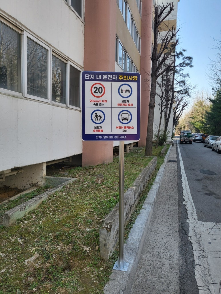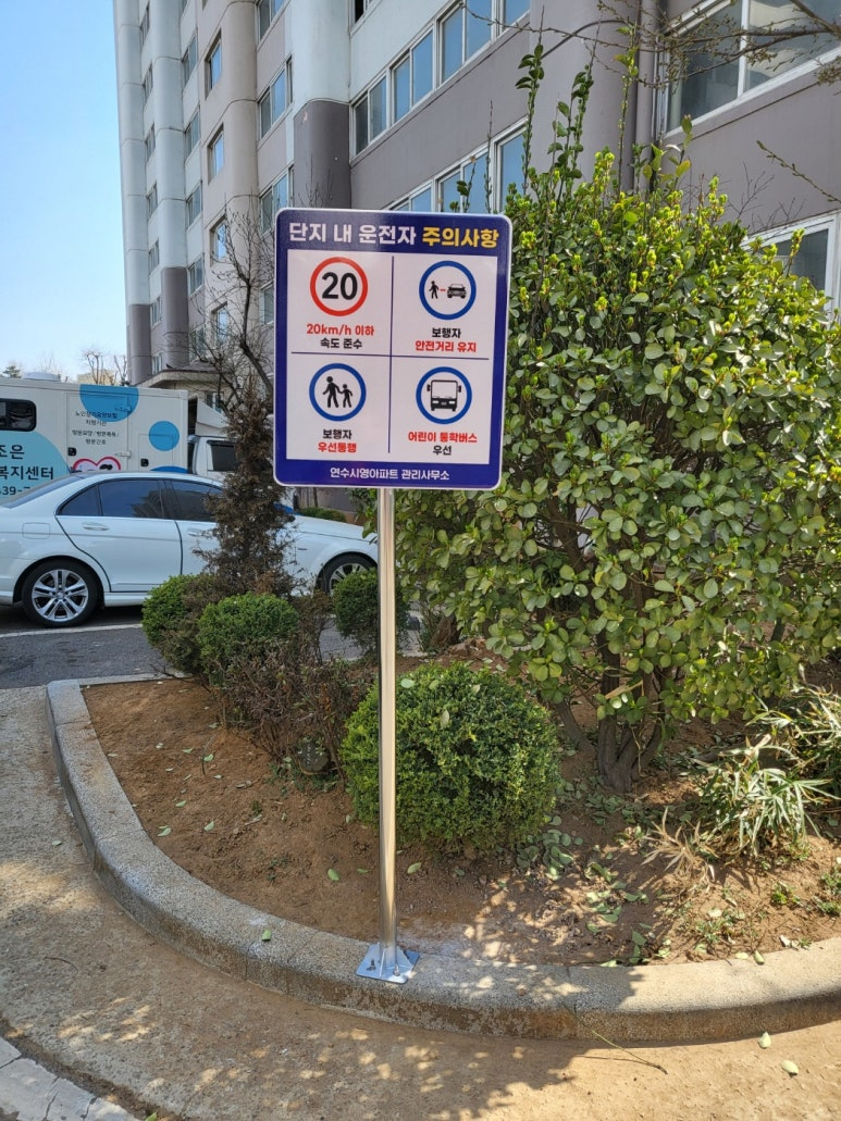 다음은 단지 내 운전자 주의사항 표지판입니다!
