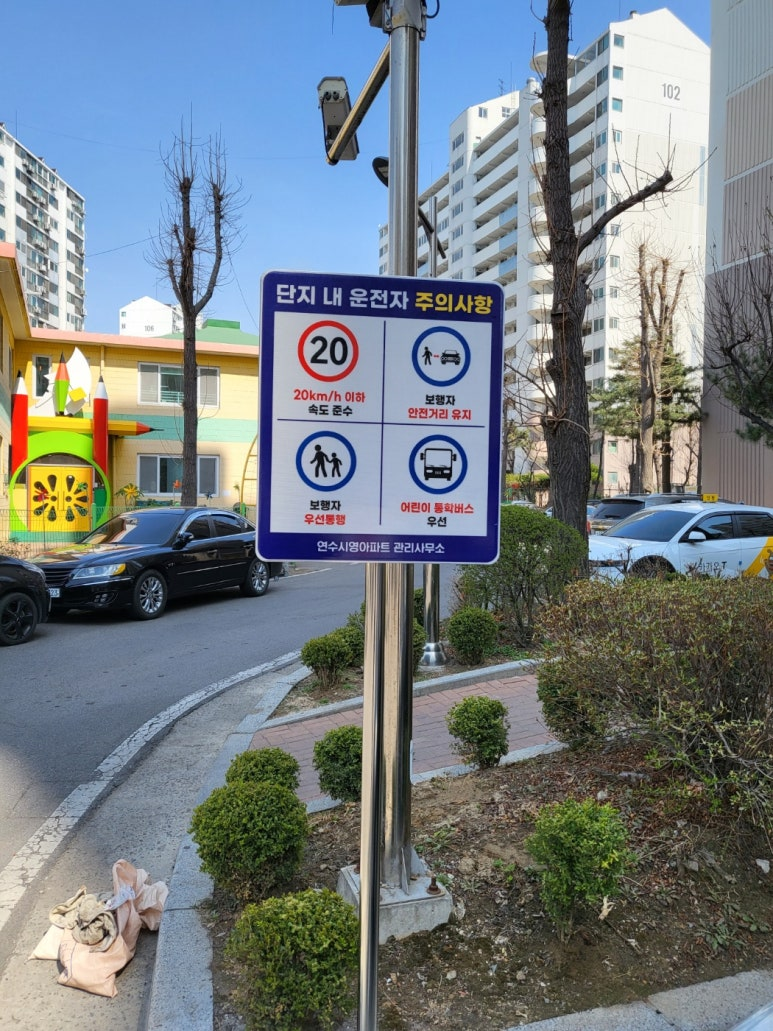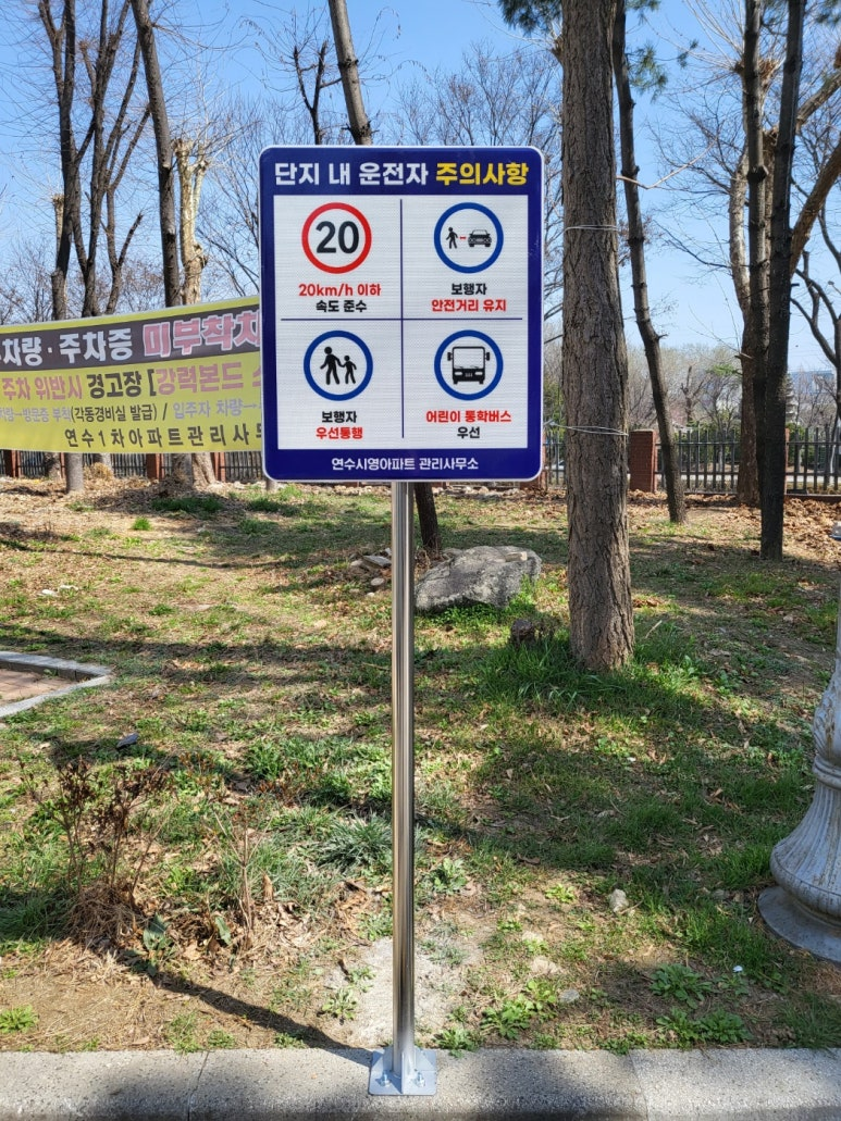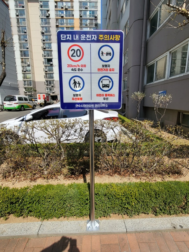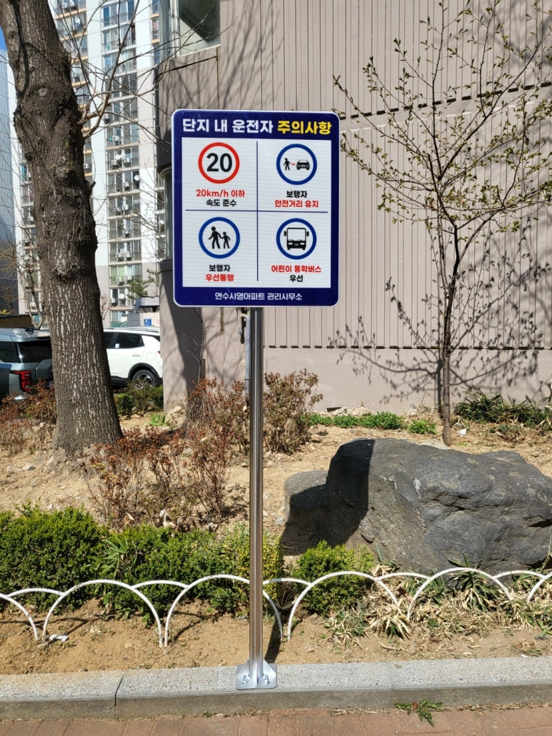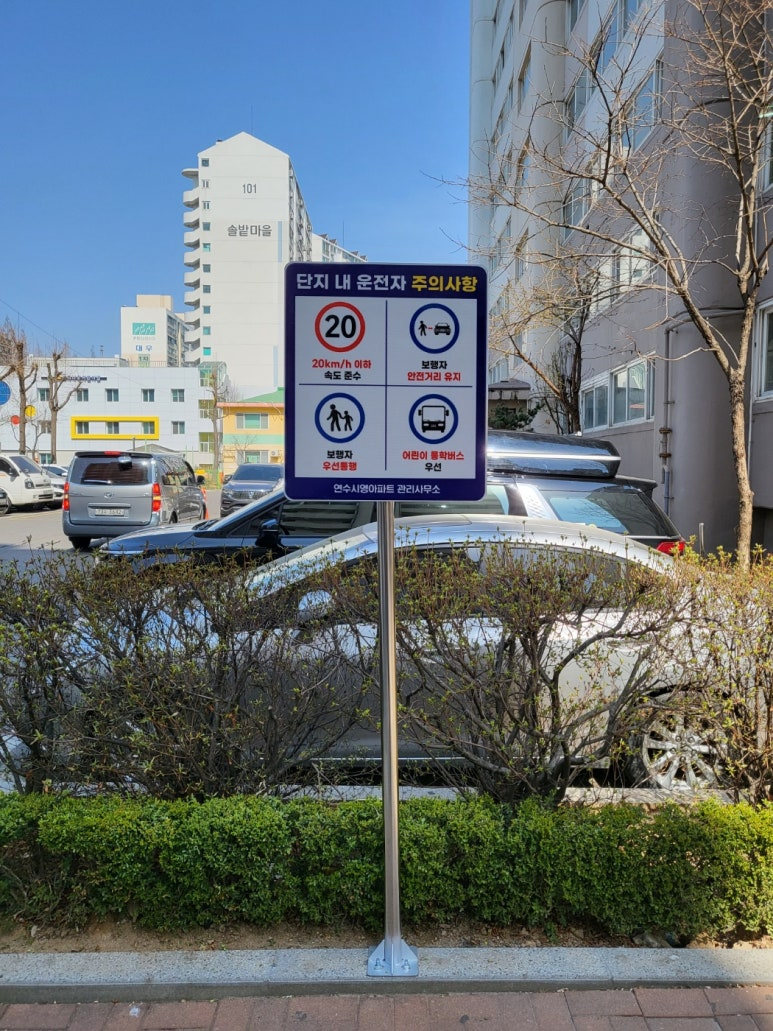 다음은 연수시영아파트에서 주문해주신 단지 내 운전자 주의사항 표지판입니다!