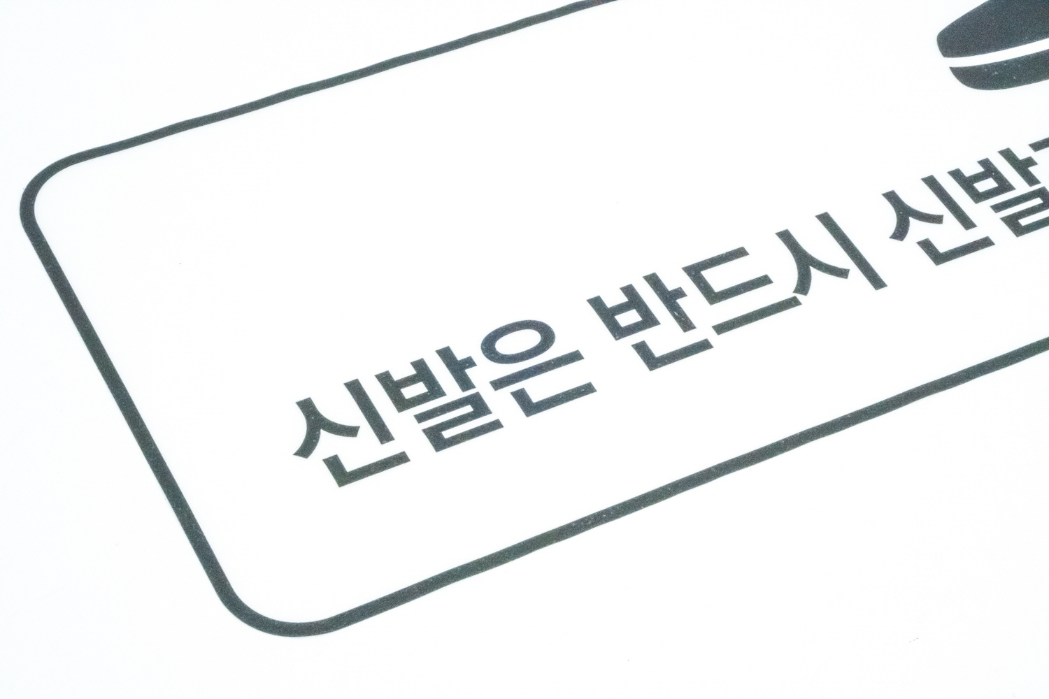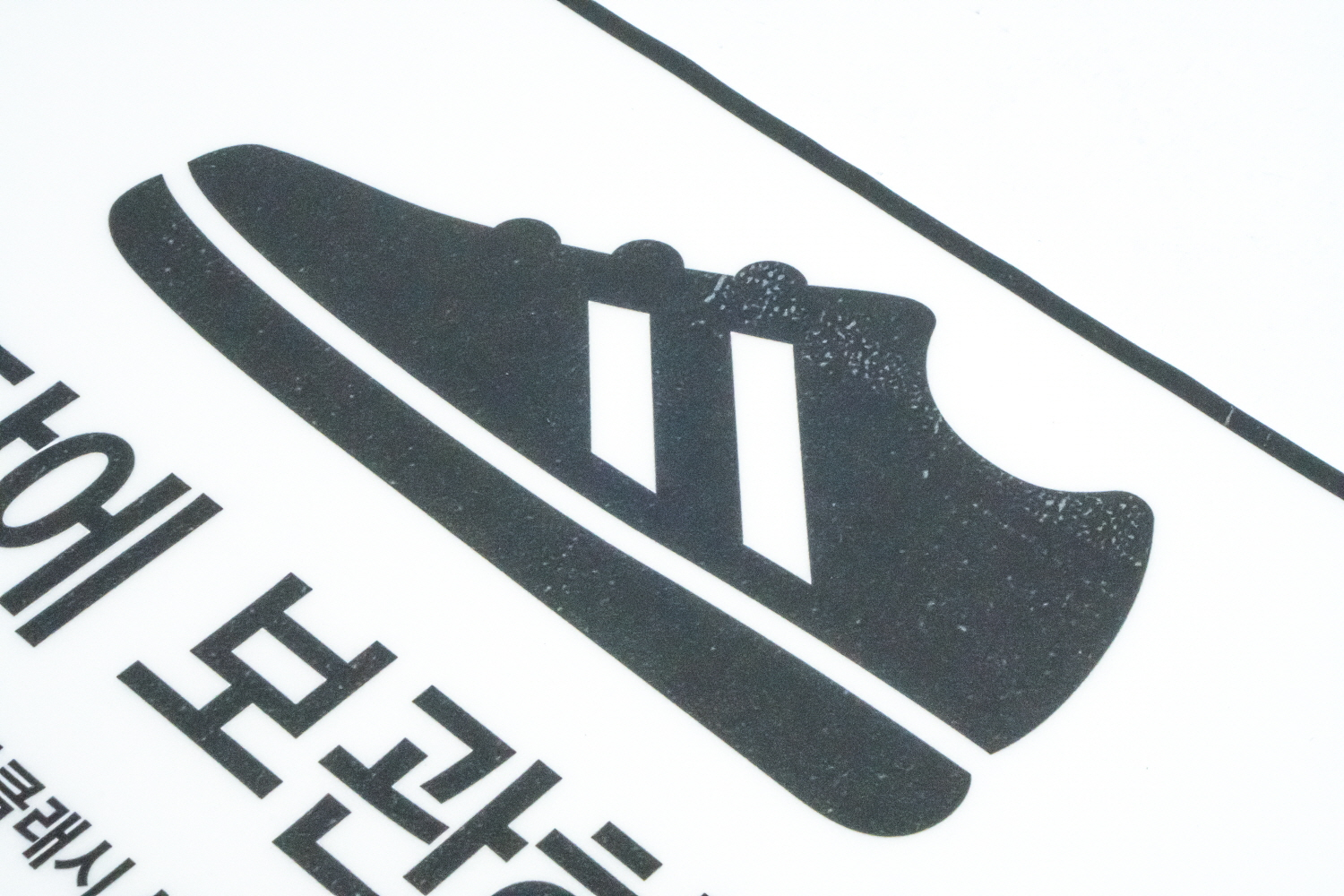 신발은 신발장에 보관하고 입장 하는것을 알리는 미끄럼 방지 바닥 스티커 입니다.