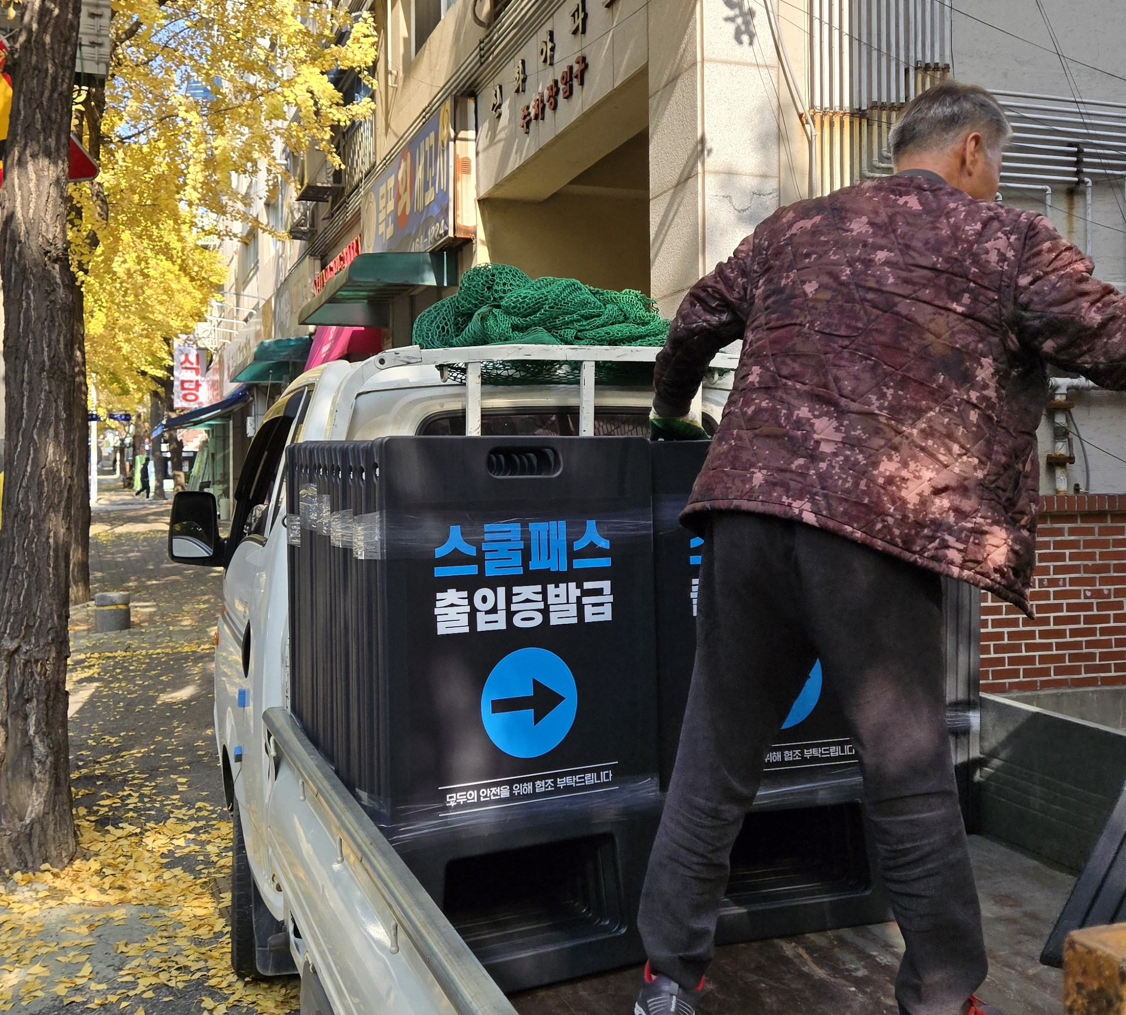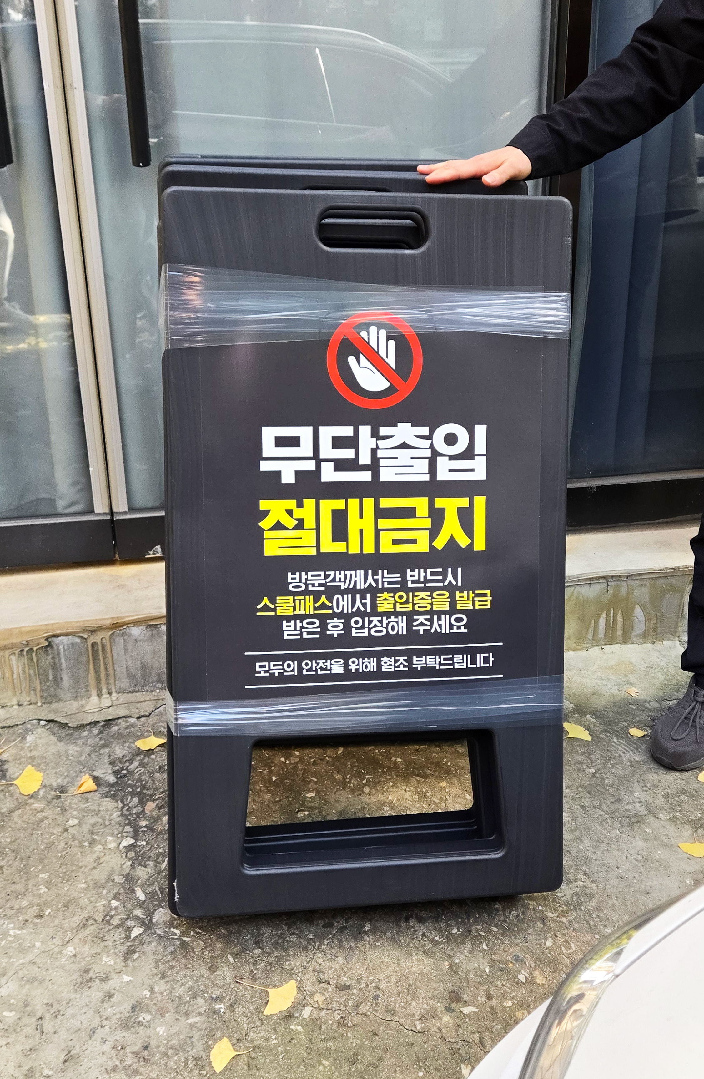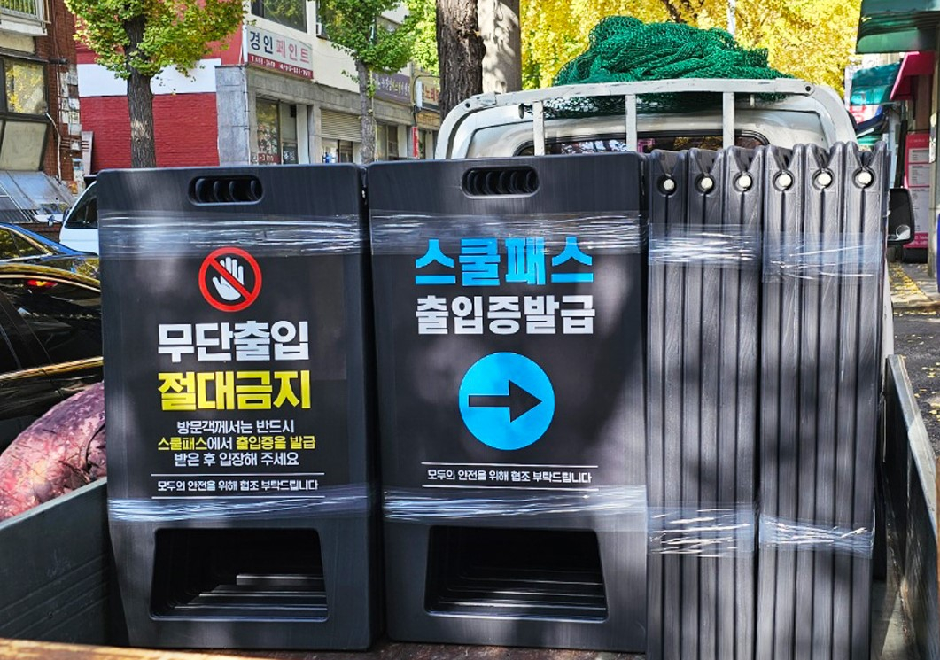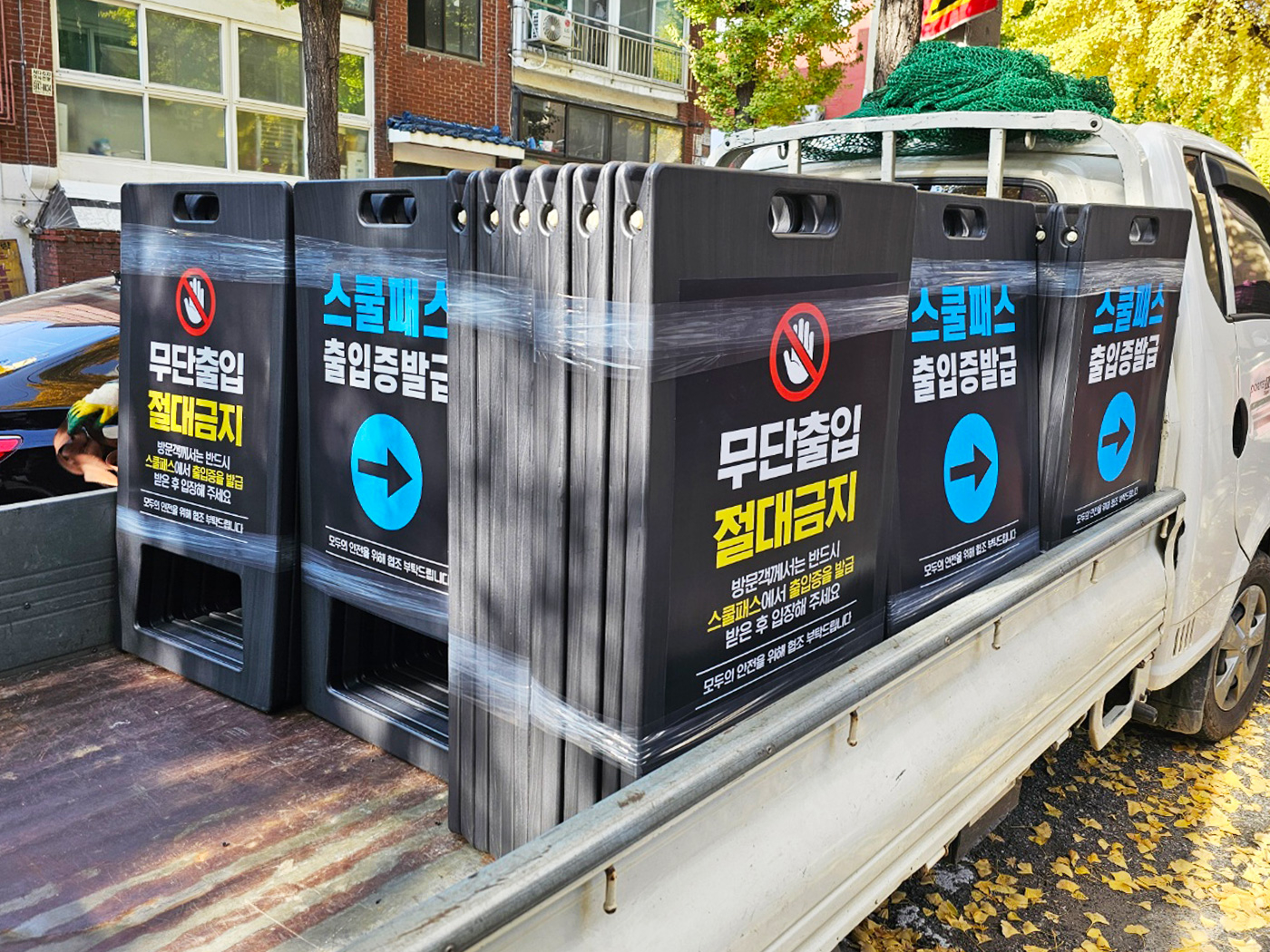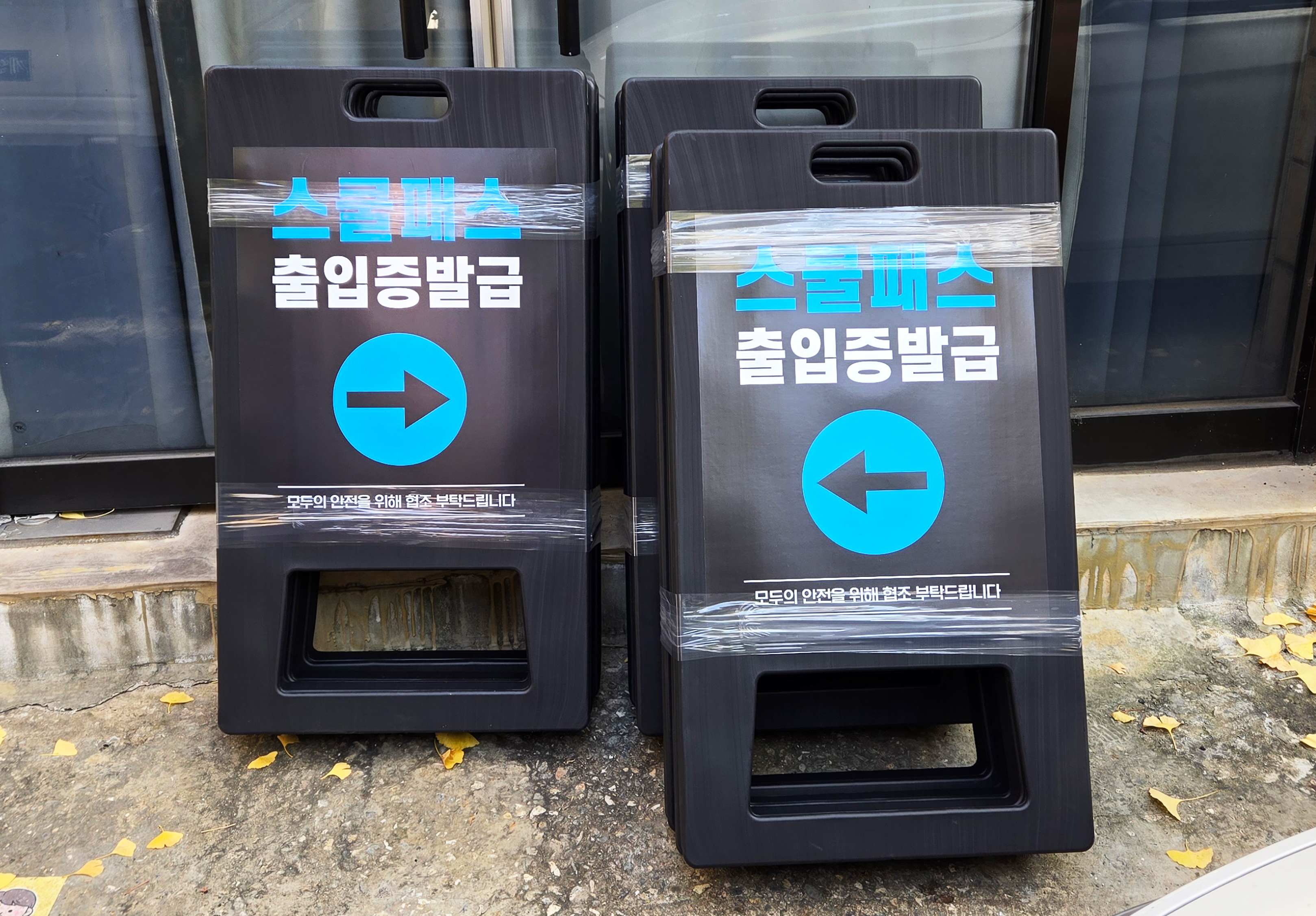 수능시험장 무단출입 방지 스쿨패스 출입증 A형입간판 출고사례