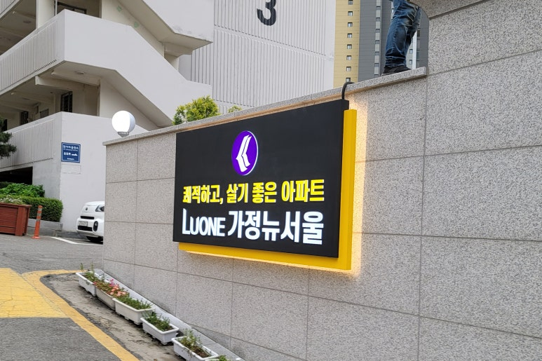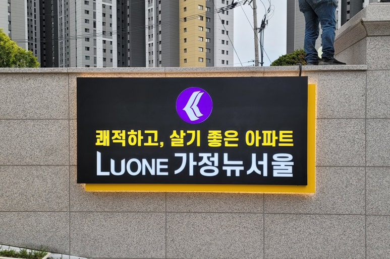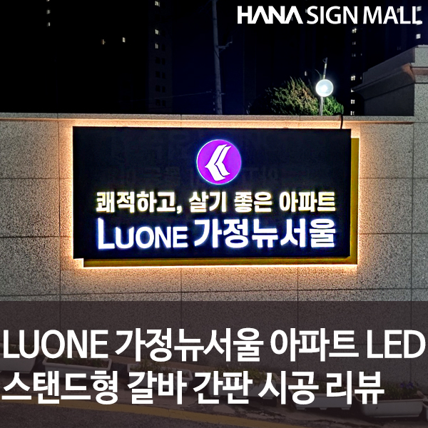 오늘은 LUONE 가정뉴서울 아파트 LED 스탠드형 갈바 간판 시공 리뷰를 보여드리겠습니다!
