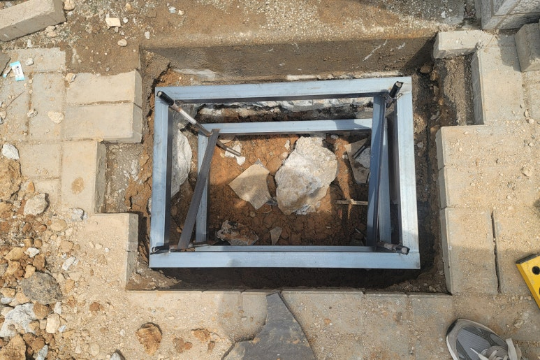 갈바 프레임이 세워질 곳에 단단하게 고정할 수 있는 지지대를