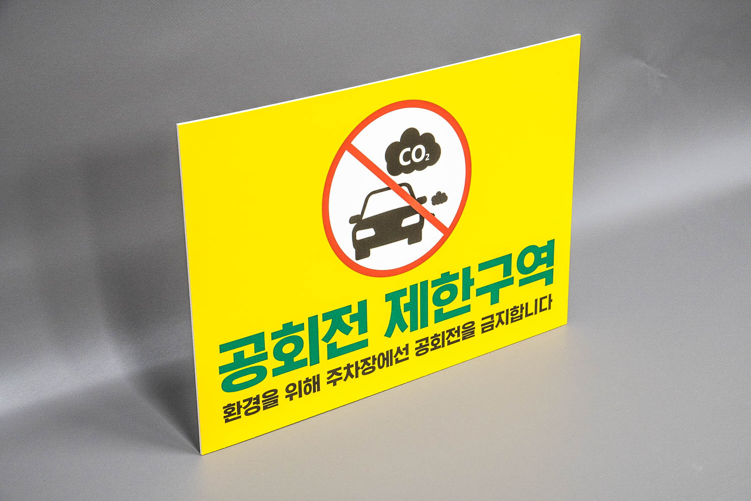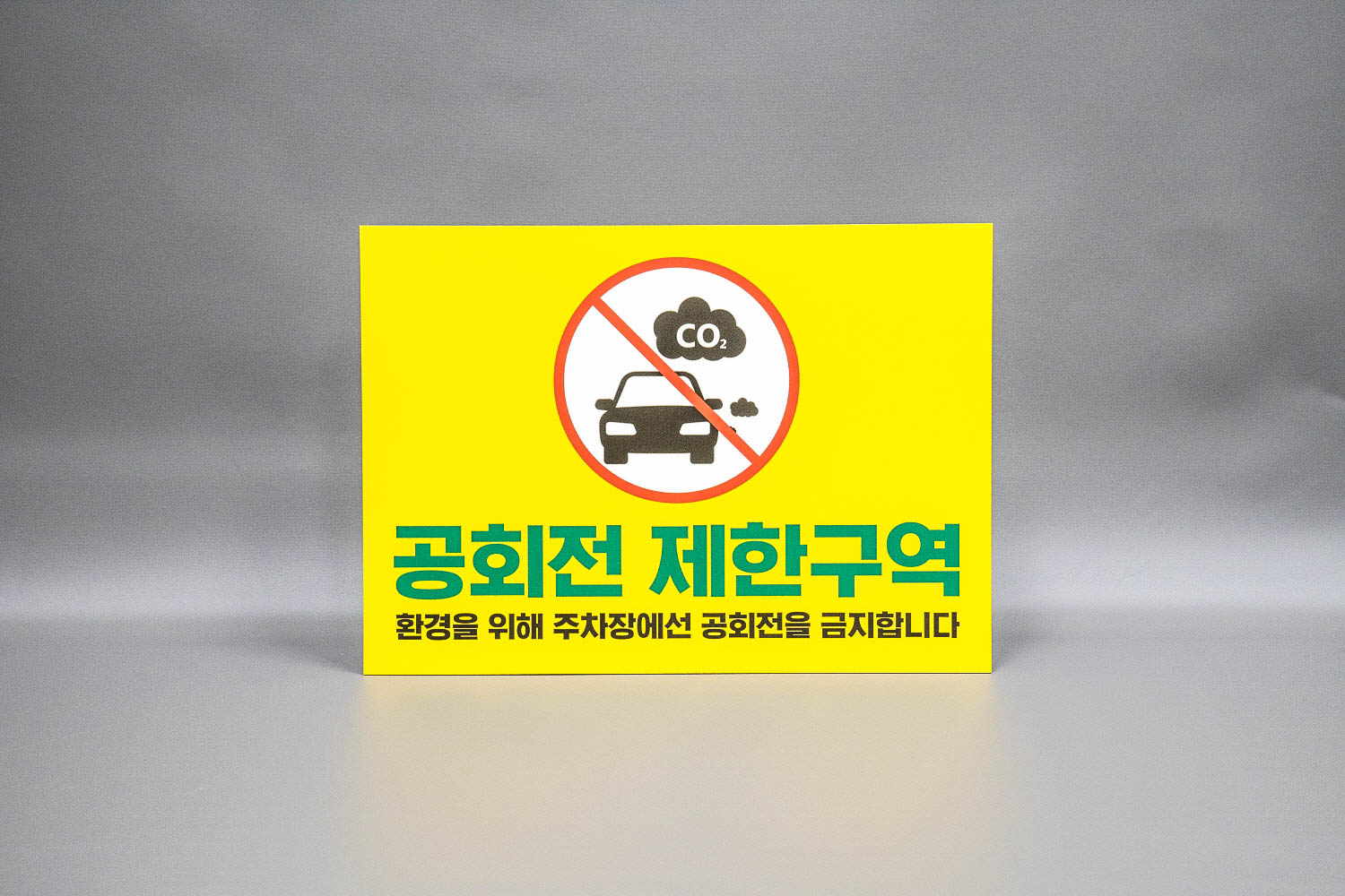 주차장 내 환경을 위해서 공회전을 금지함을 알리는 안내판 표지판 타입 이에요 ~~