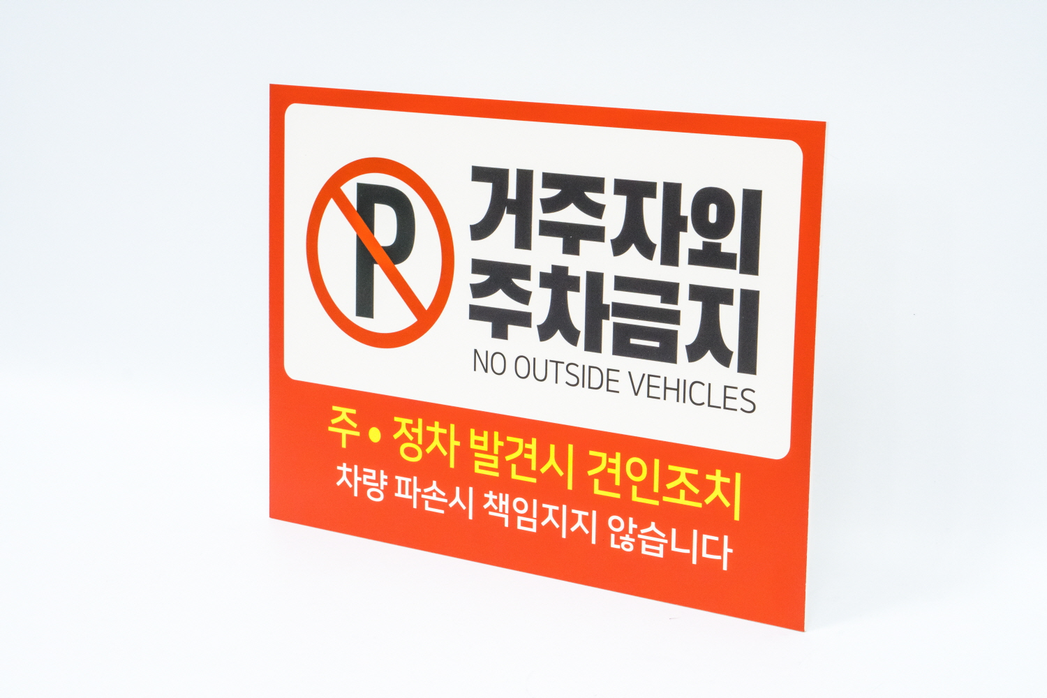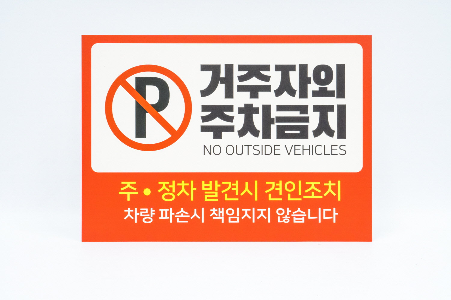 거주자외 주차금지 표지판은 눈에 띄는 디자인으로 외부차량을 경고 할 수 있겠어요 !!