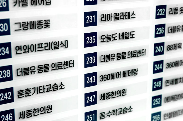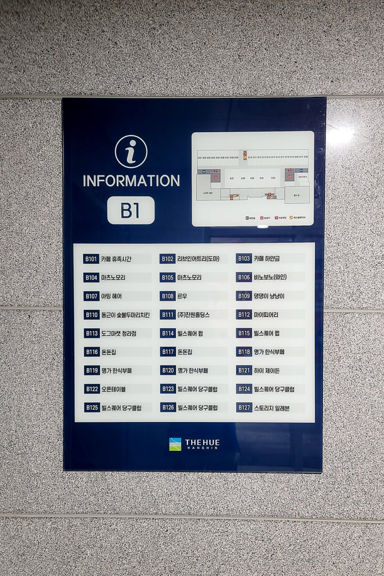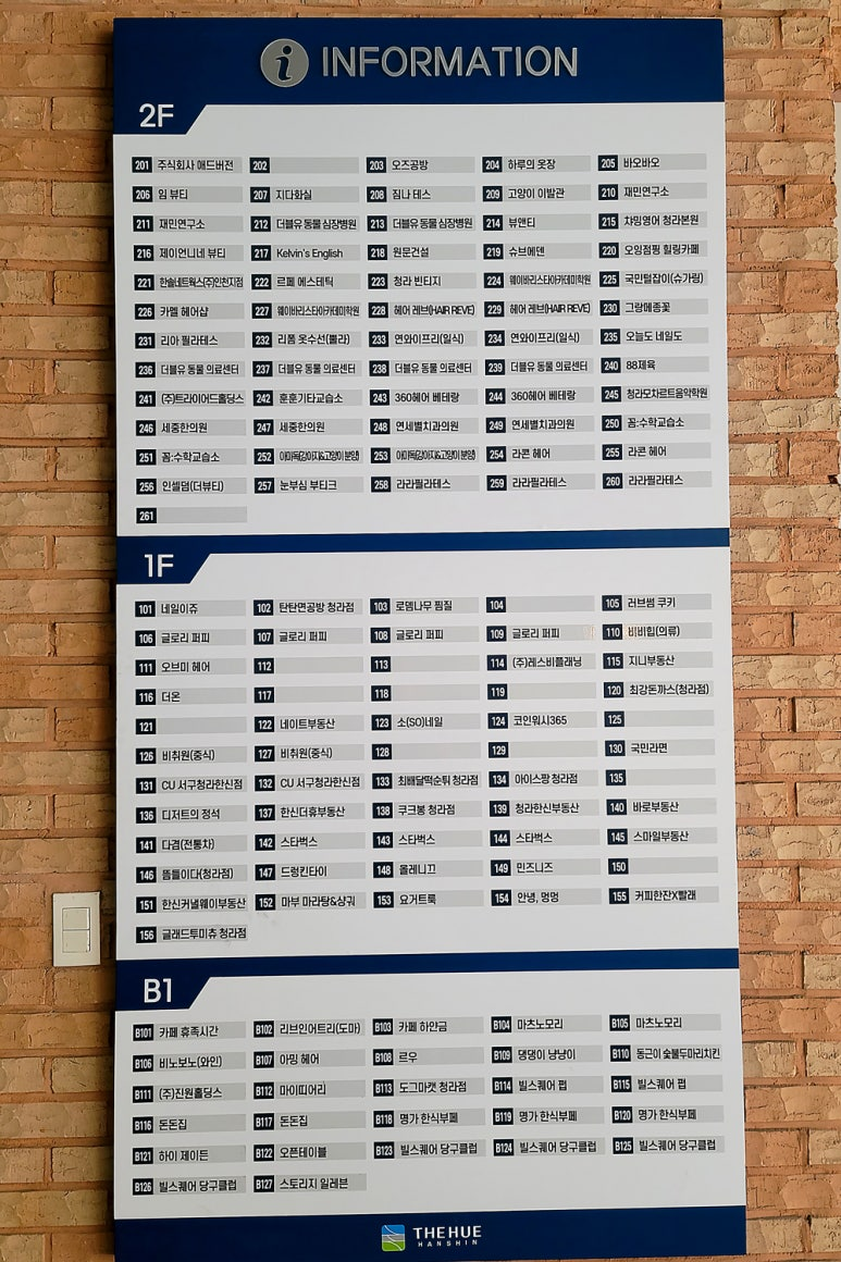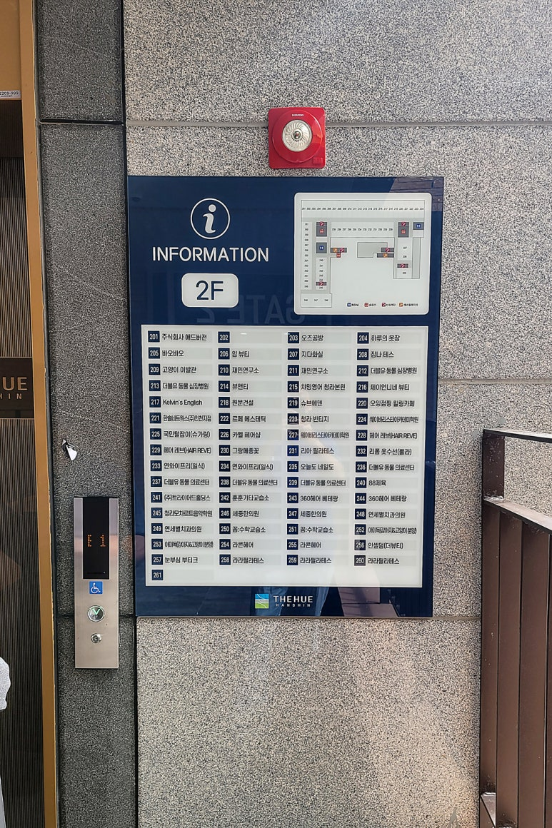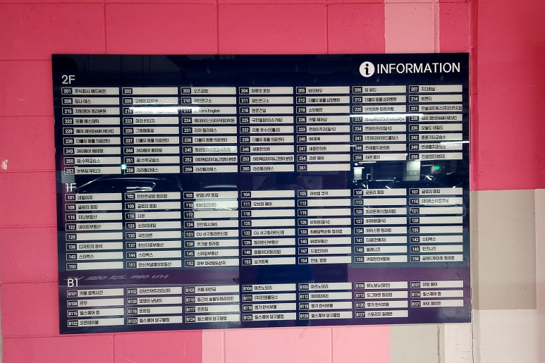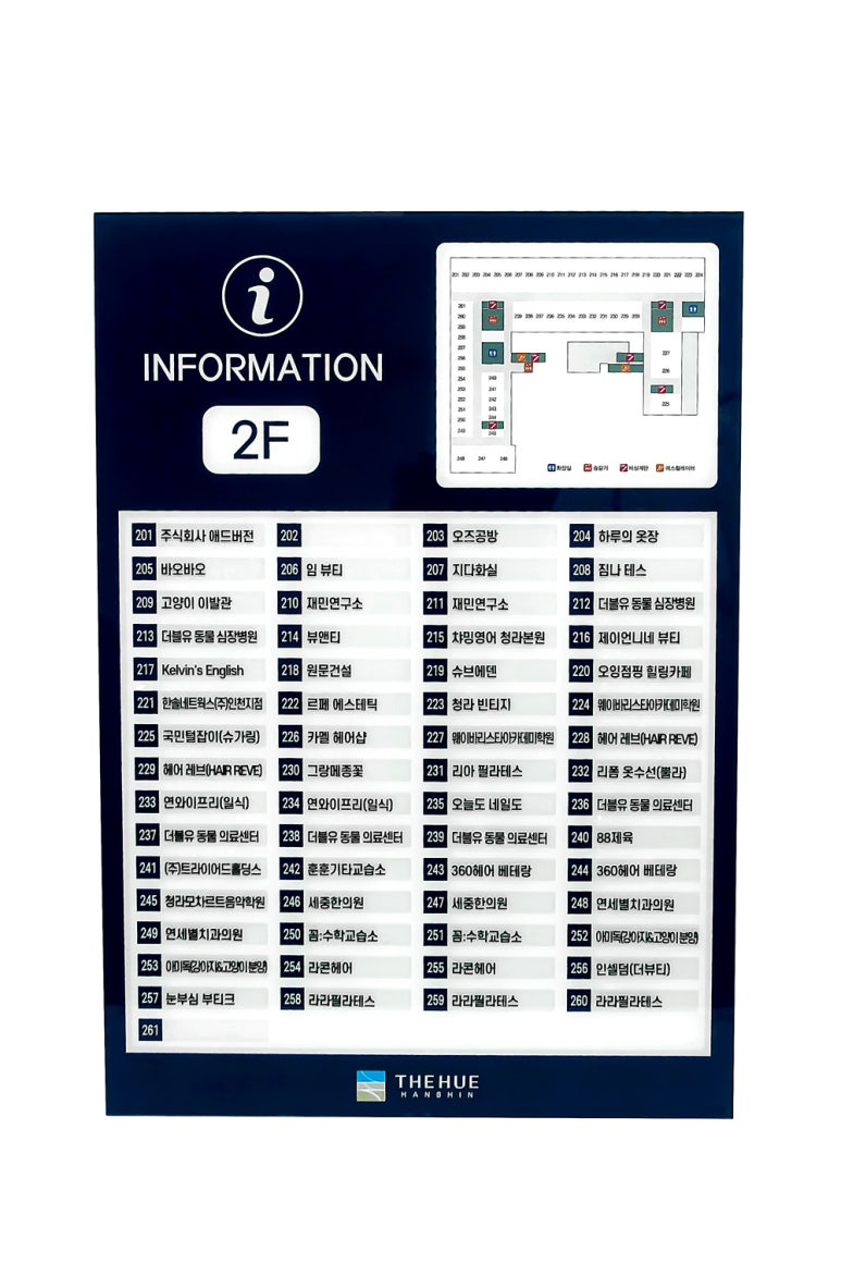 선명하고 뚜렷한 색상의 안내판으로 각 층별 상호명을 쉽게 안내할 수 있는데요!